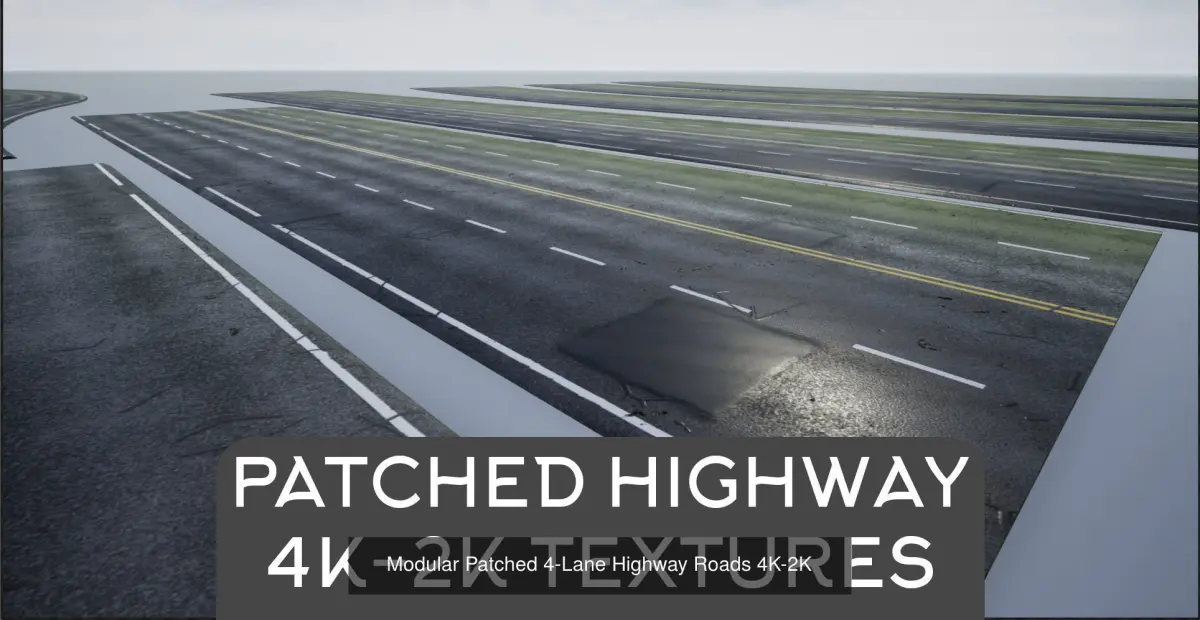 - Four Lane Road Patched 2 Textures Albedo,Normal,AO,Roughness,displacement,Mask(4096x2048) 4K