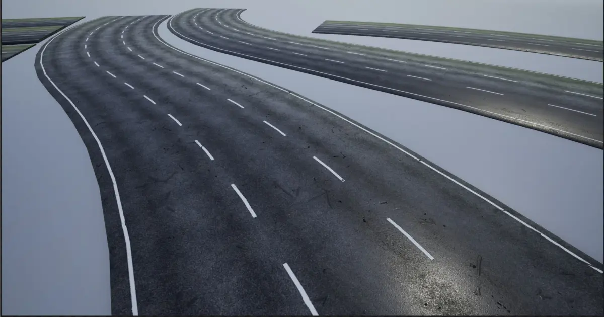 The individual images belong to PBR textured models and they are rendered in 3dsmax. The images of roads that are together are taken from unreal engine with different lightning than 3dsmax.