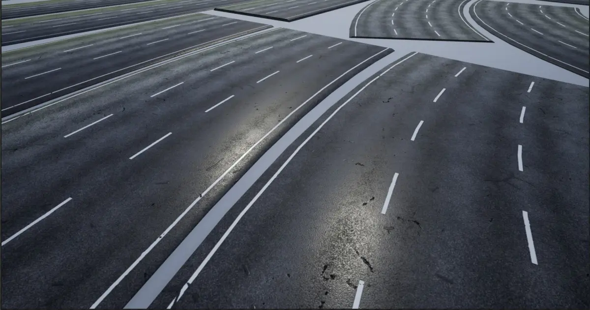- 3-Lane 50m 30 Degree Turn : 142 polys, 284 tris, 160 verts