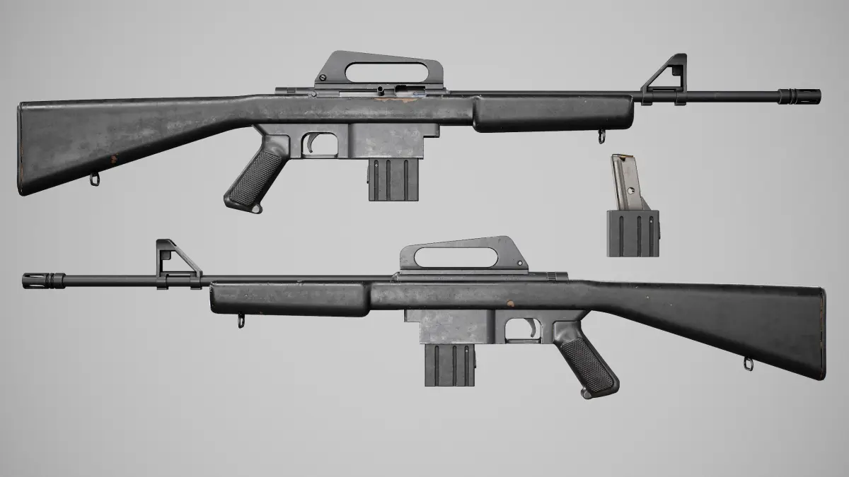 The Weapon contains 17 separate objects and are ready to be rigged or configured.