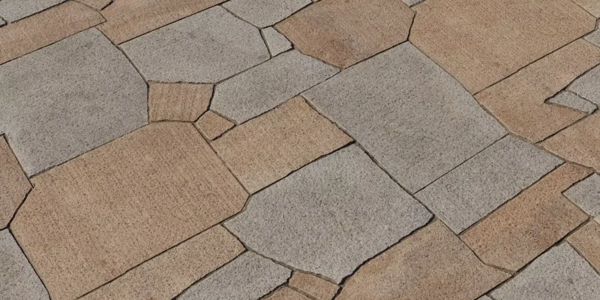 Scale: slab sizes authored to realistic patio/plaza proportions; align and offset UVs to vary course layout over large areas.