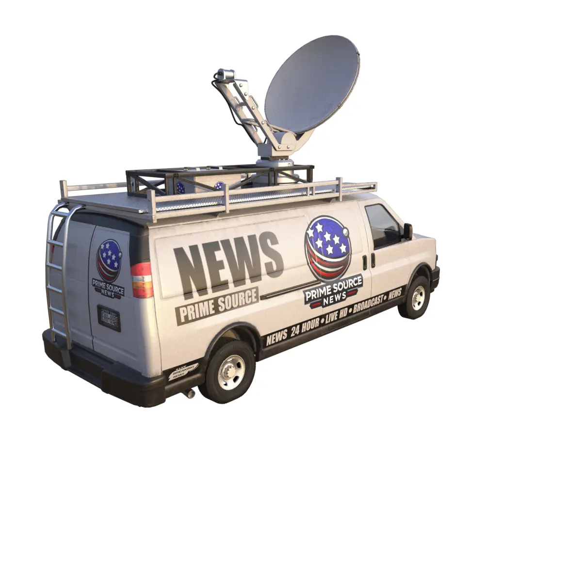 Game ready PBR model of a news van. Very light yet realistic. Total polygons 80KPerfect to decorate reporting scenes. News reporting segments.