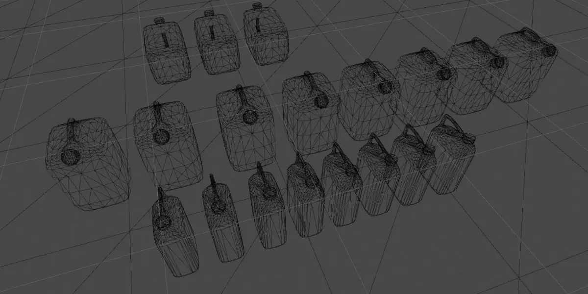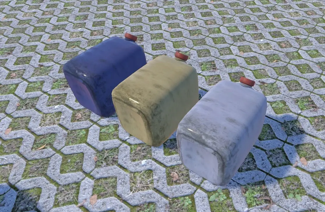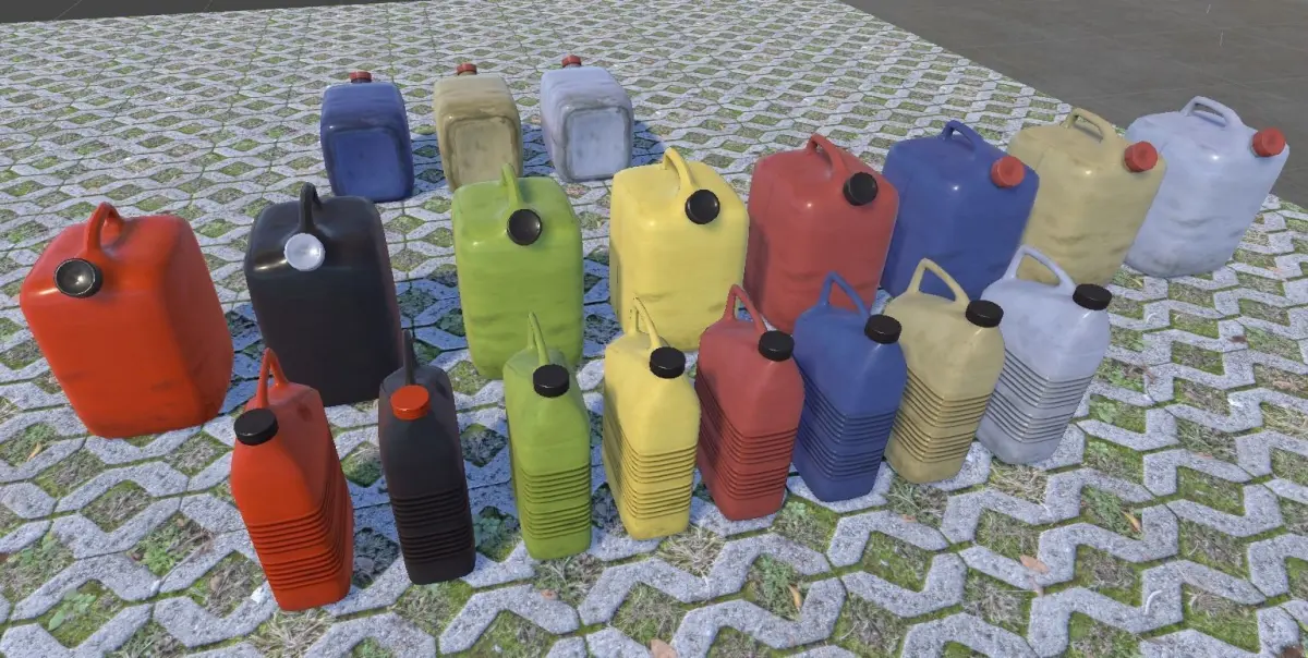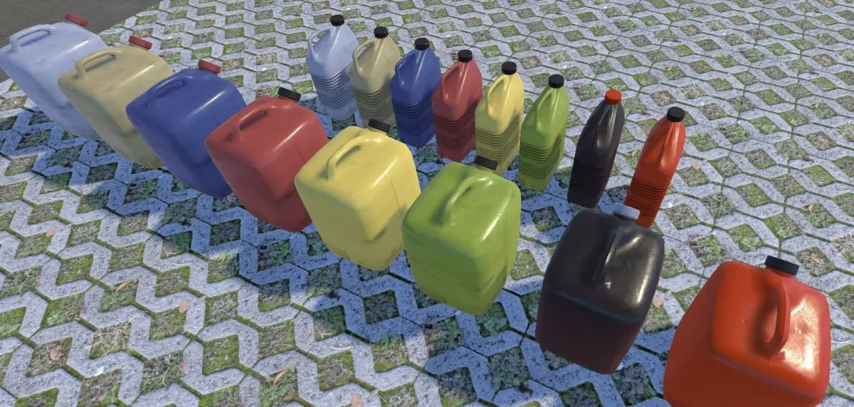 This package contains 4 different PBR ready types of plastic-canisters. Both come up with 8 different texture-sets.