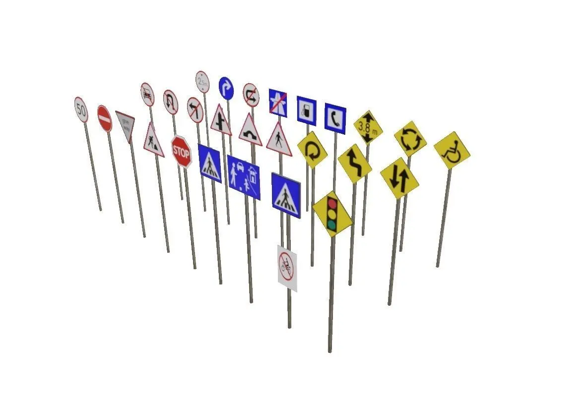 pbr Game ready traffic road signs Low-poly 3D model