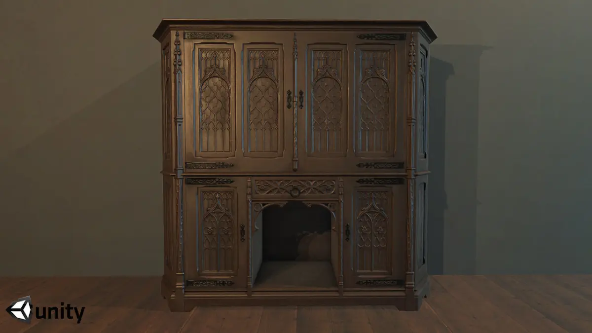 - Wardrobe_gothic.fbx- Wardrobe_gothic_col.fbx - Collision Model- 4 Textures in PNG format (Albedo, Ambient Occlusion, MetallicSmoothness, Normal)