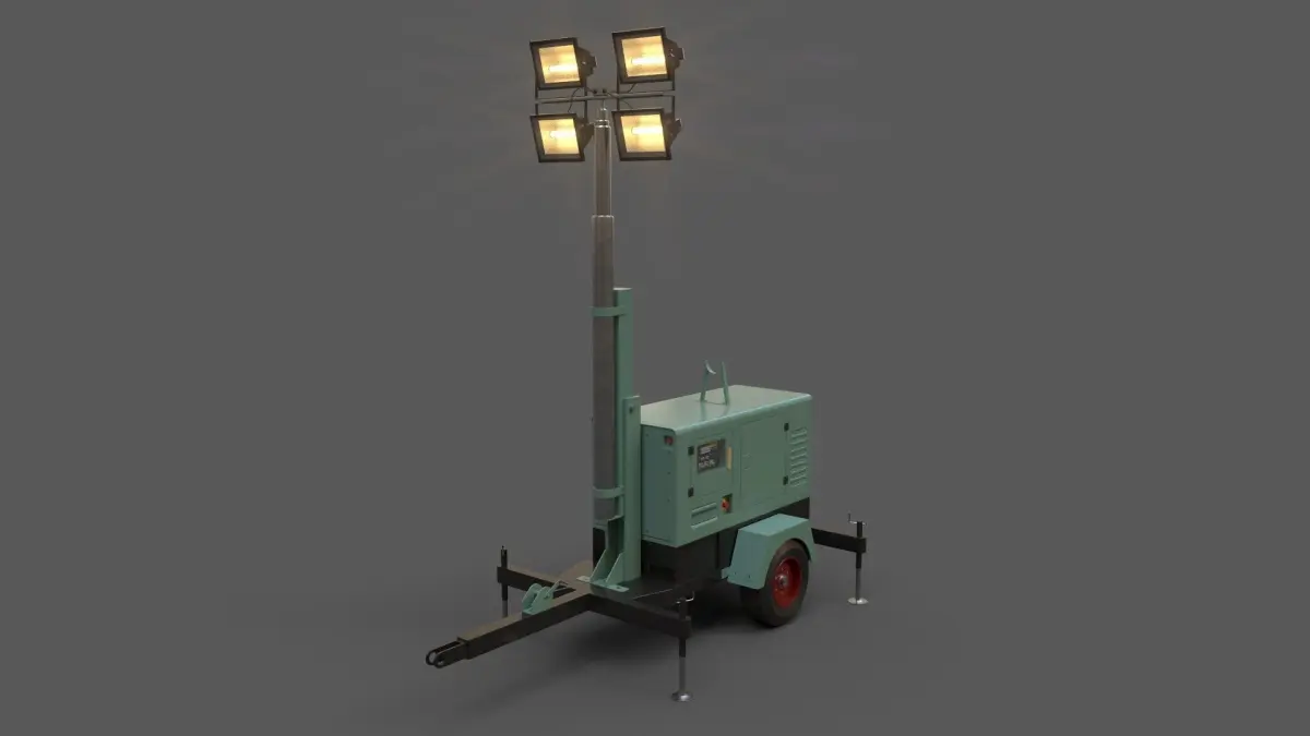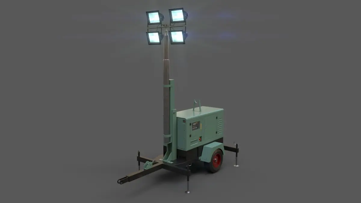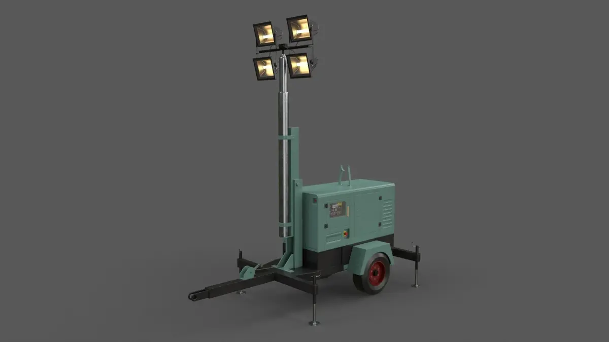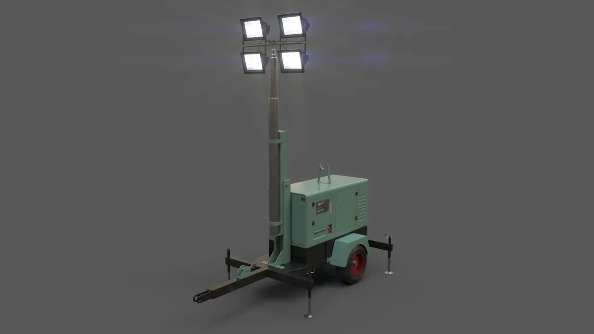 Home Catalog PBR Mobile Light Tower Generator A - Green Light Low-poly 3D model