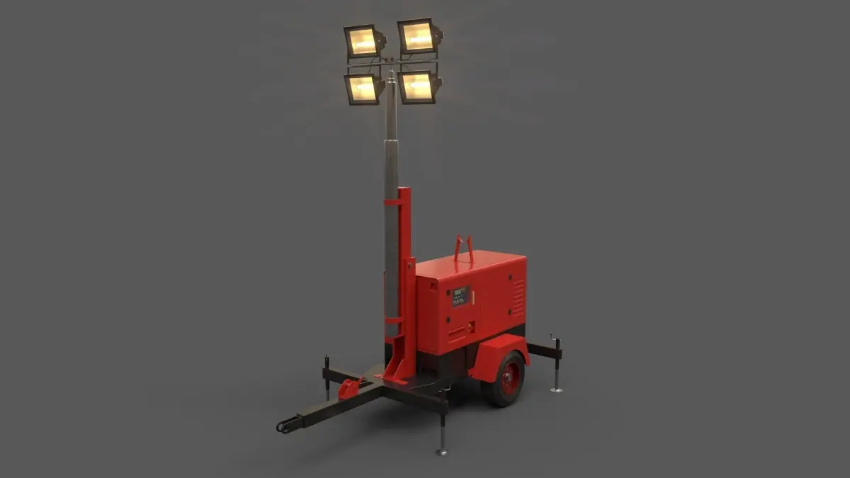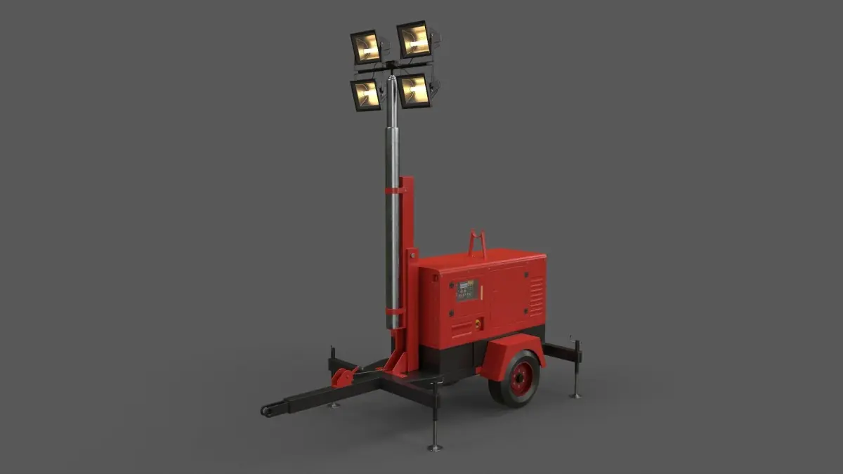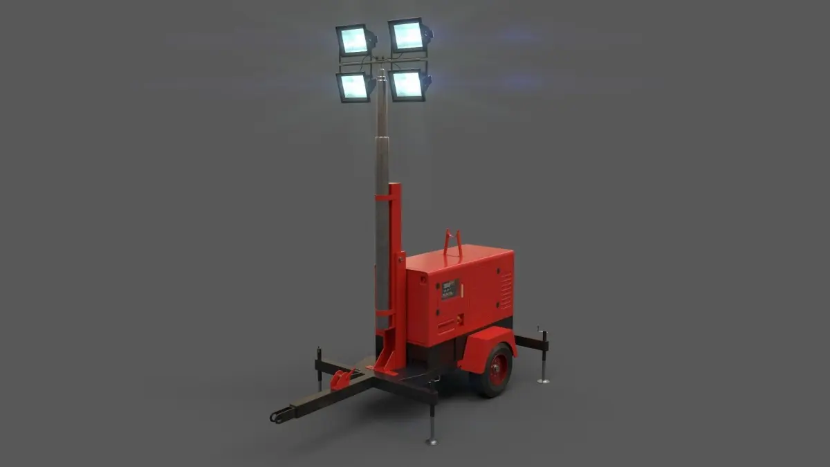 PBR Mobile Light Tower Generator A - Red Low-poly 3D model