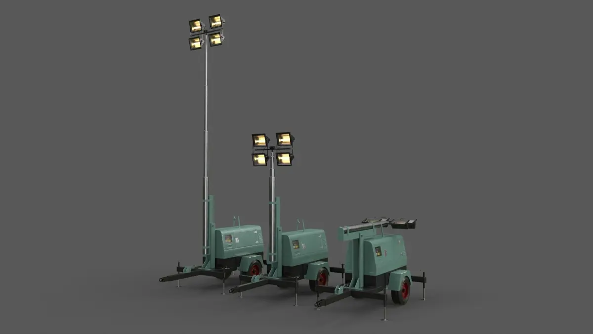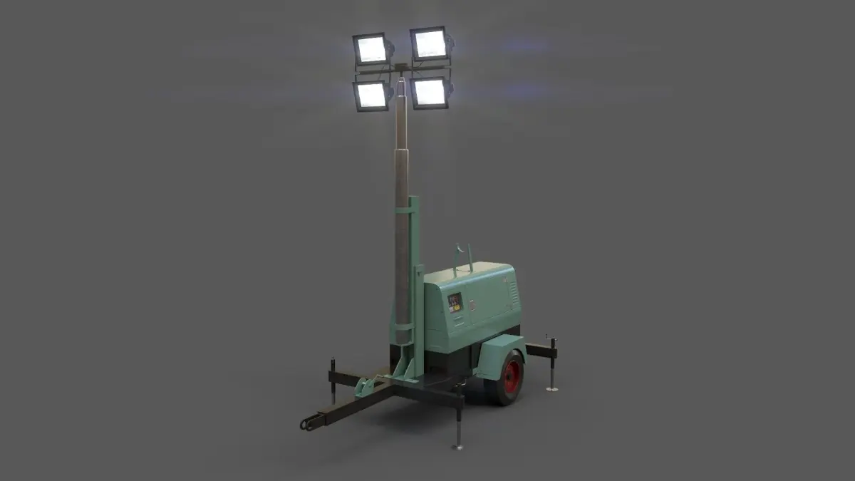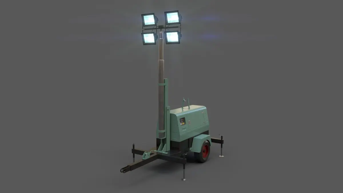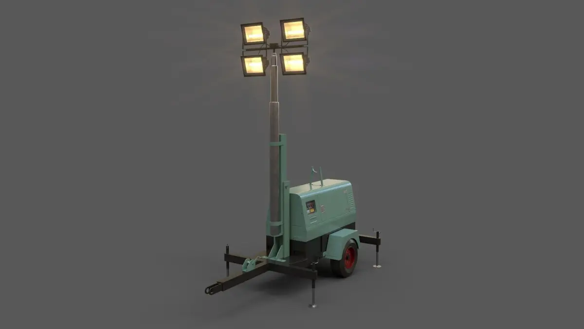 Home Catalog PBR Mobile Light Tower Generator B - Green Light Low-poly 3D model