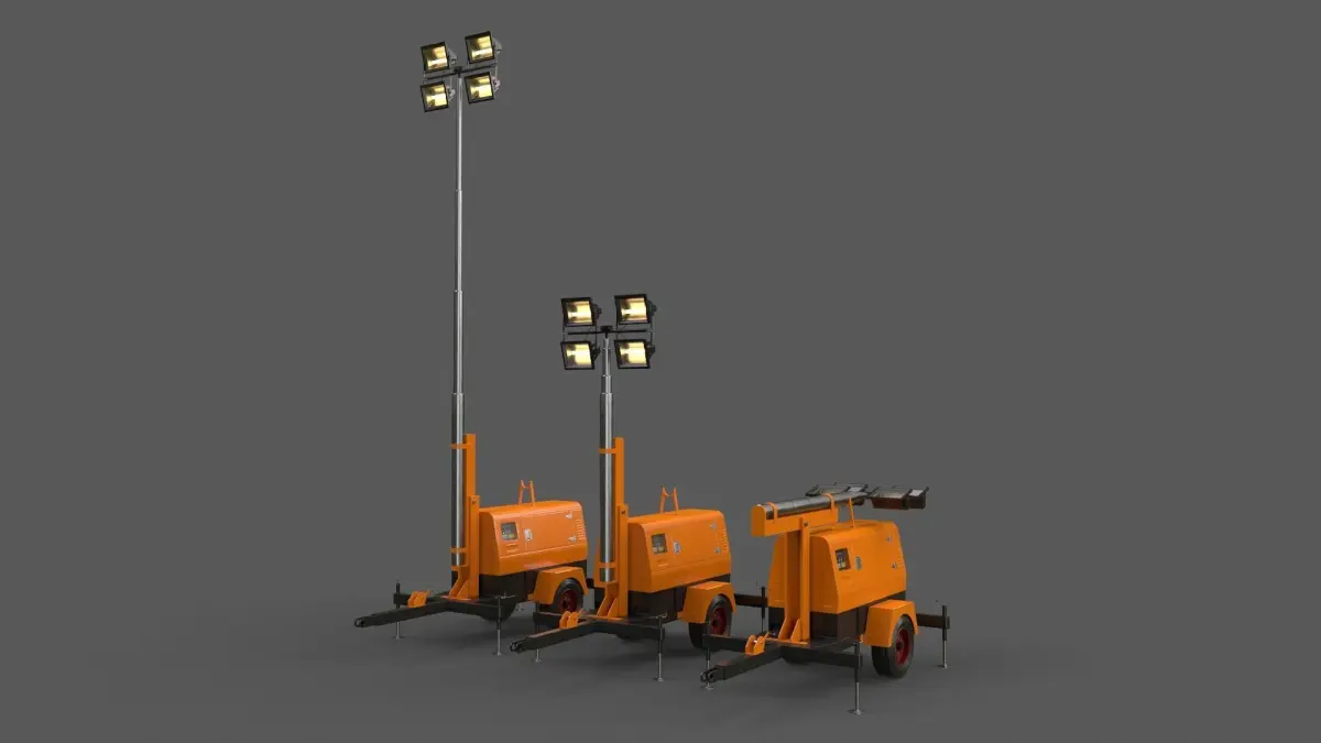 Home Catalog PBR Mobile Light Tower Generator B - Orange Low-poly 3D model