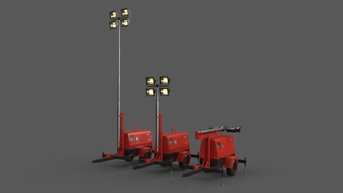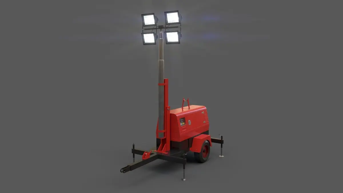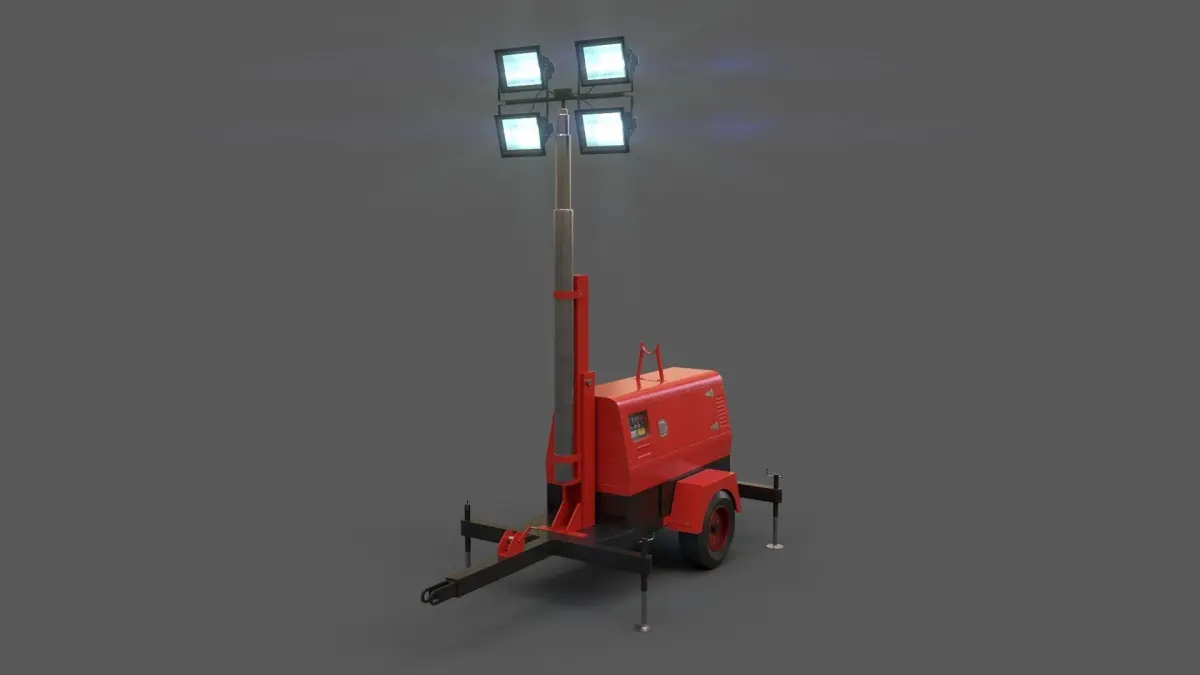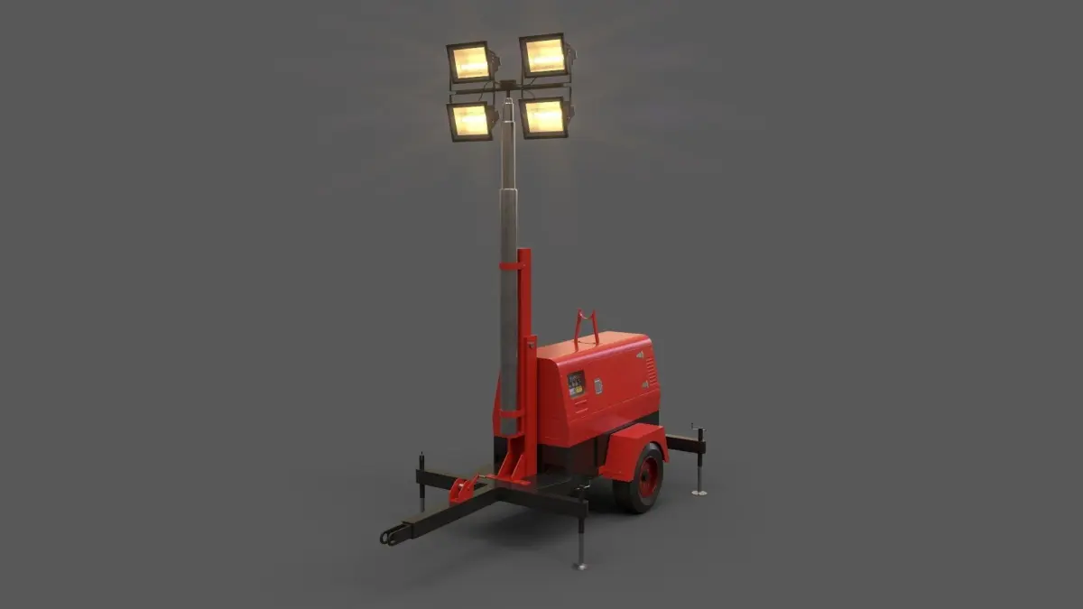 Home Catalog PBR Mobile Light Tower Generator B - Red Low-poly 3D model