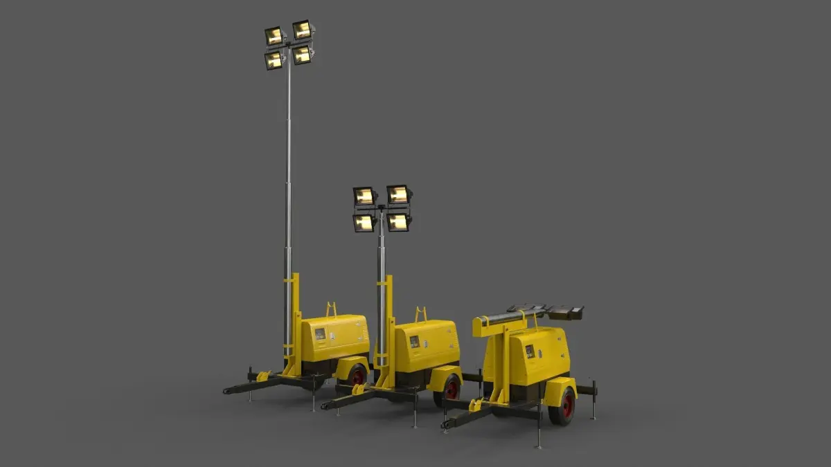 Home Catalog PBR Mobile Light Tower Generator B - Yellow Light Low-poly 3D model
