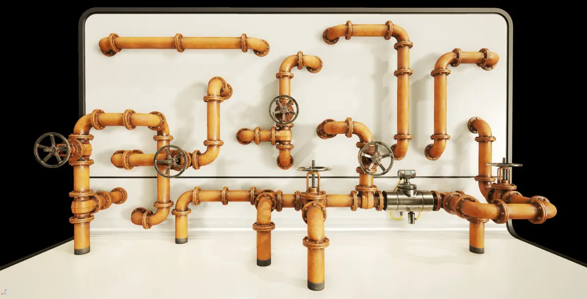 Unreal Engine Project 4.22+A Very Detailed Low Poly set of Pipes with High-Quality PBR Textures, and 4 different color variations. PBR Pipes Set. This pack contains the following: