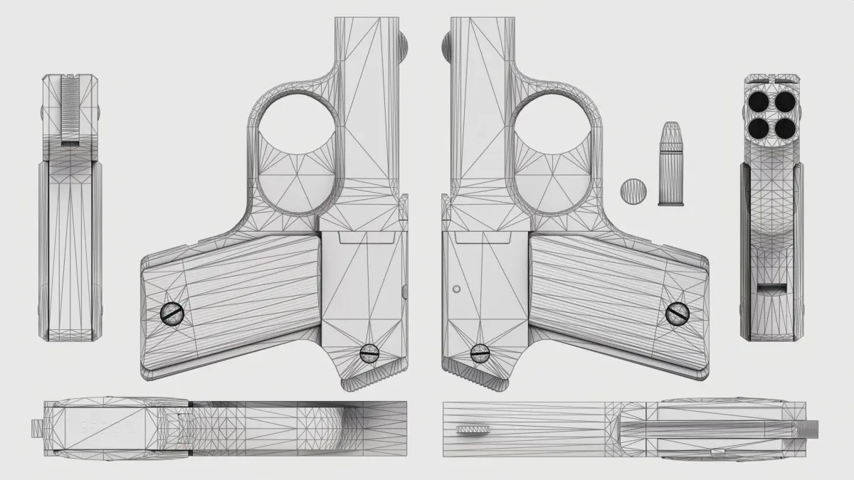 The Weapon contains 9 separate objects and are ready to be rigged or configured.