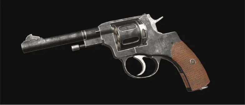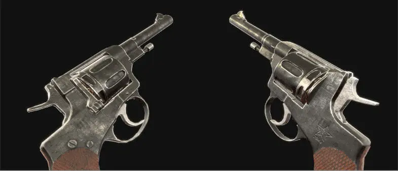 High quality game ready model of Nagant revolver. Textures in resolution 2048x2048: albedo, metalness, normal, AO.