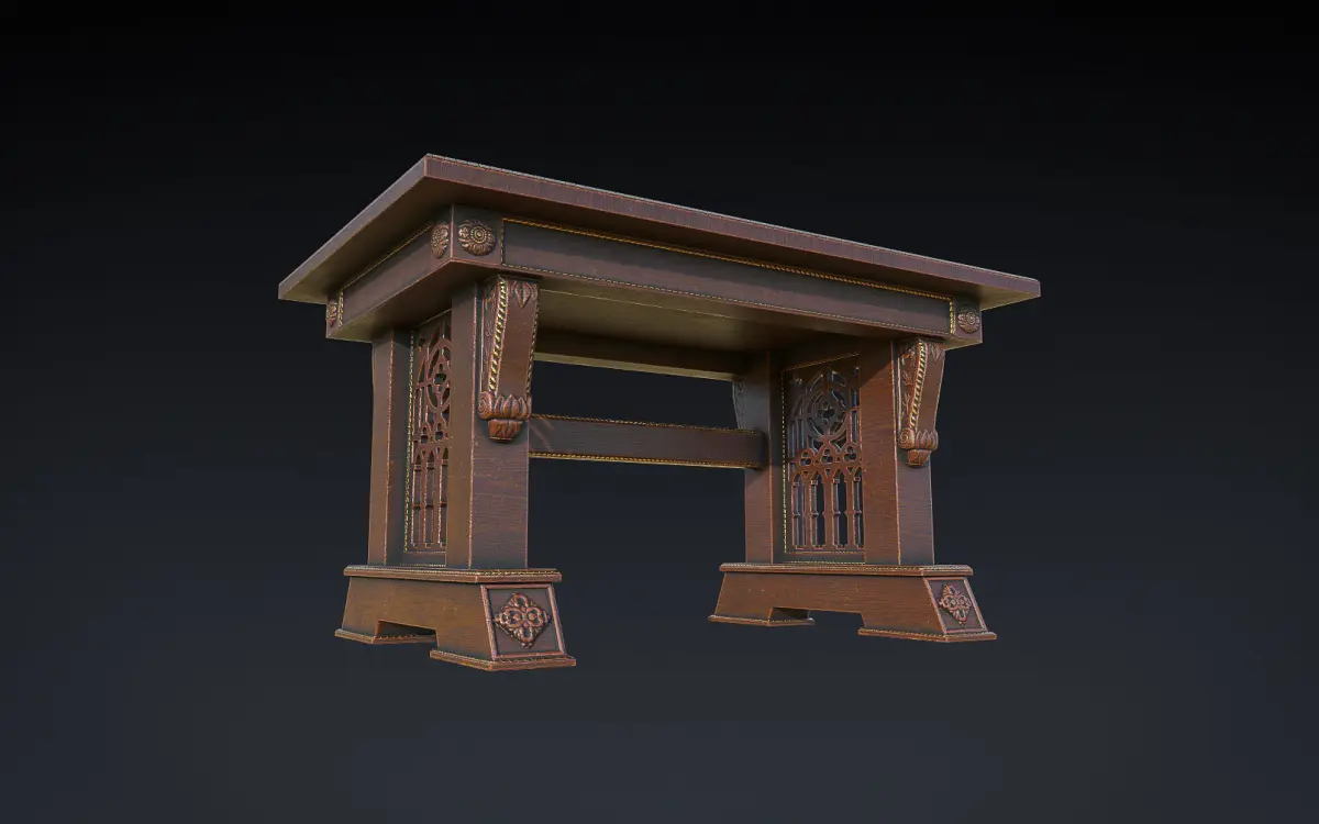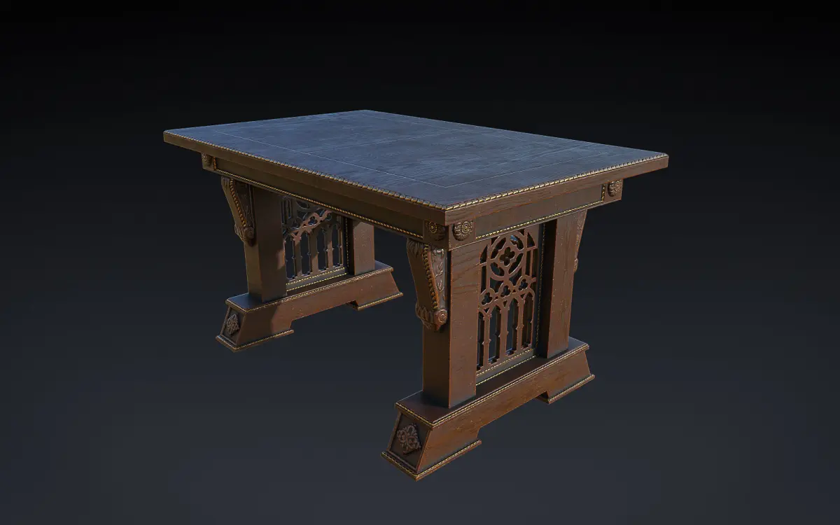 - Desk_gothic_ARM.tga - Ambient (Red channel), Roughness (Green channel), Metallic (Blue channel).