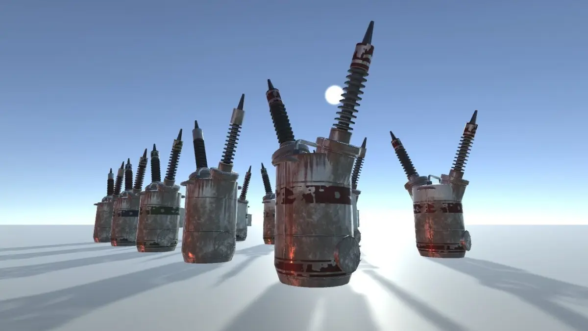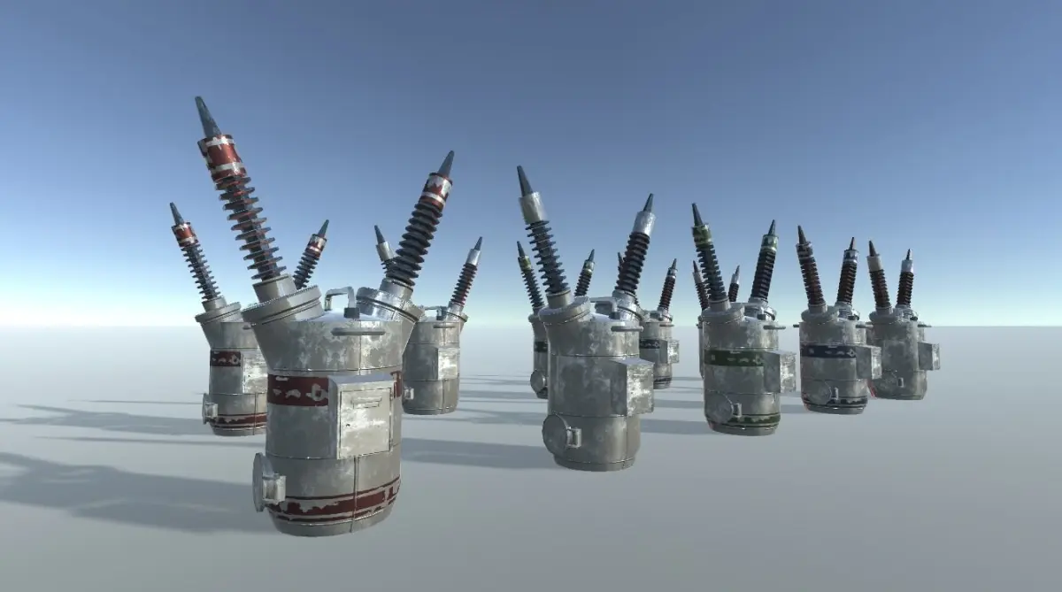 This package contains a pbr powerstation prop in 8 different variations.Textures include Albedo, Normal, AO, Smoothness, and Metallic.Textures sizes: 2048x2048.Polygon Count: about: 2530Textures work with Unity Standard Shader, HDRP and LWRP Lit Shader.
