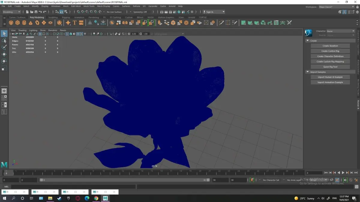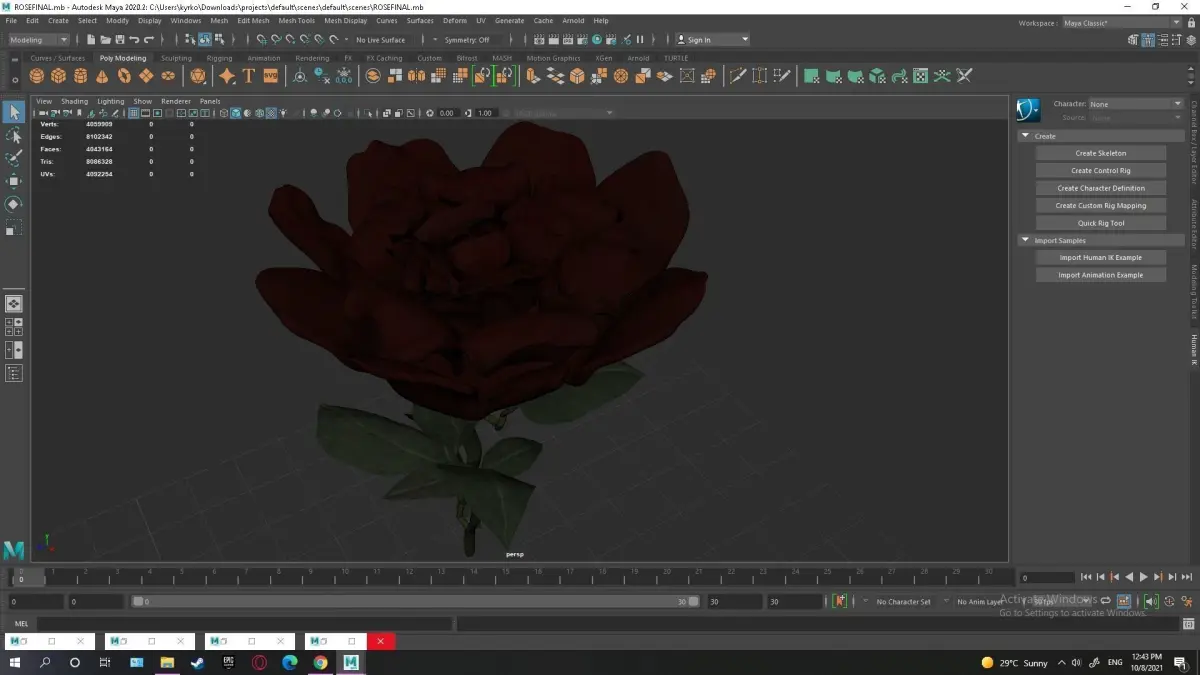 This is a high poly rose with a poly count of 4043164 and realistic 4K PBR textures meant for commercial use of any kind. Make sure you download and exract all of the files including the hdri so that everything works correctly. You can right click and open the texture files with winrar or 7zip to extract. You must use Arnold to render it with textures. If you wish to use another renderer you must setup the materials in hypershade by yourself. If you have any more questions please contact me on YouTube I will reply fast. Lastly place the maya file in your projects/defaults/scenes directory.