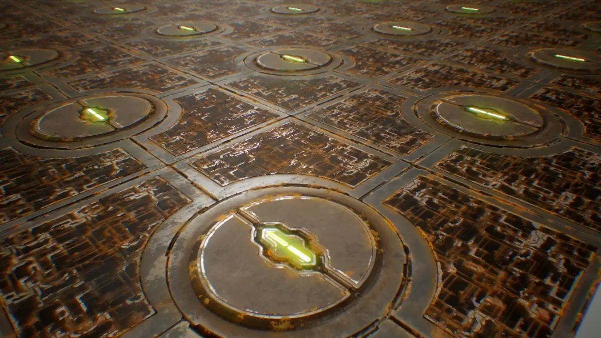 Seamless PBR Texture for Spaceship Sci-Fi Settings, can be used on Corridor Floors, Hangars, Ship Hulls etc. or combine them with other sets to give your level the desired Design.