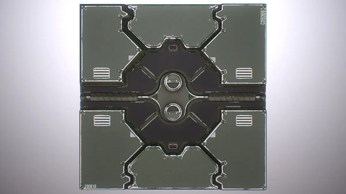 Seamless PBR Texture for Spaceship Sci-Fi Settings, can be used on Corridor Floors, Hangars, Ship Hulls etc. or combine them with other sets to give your level the desired Design.