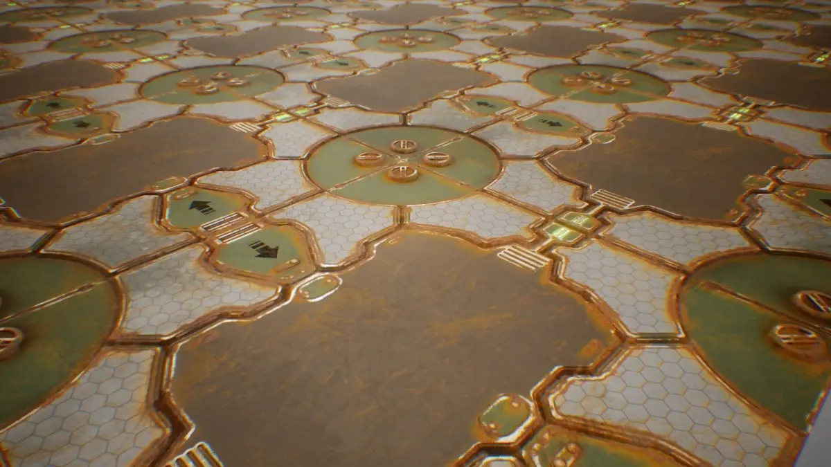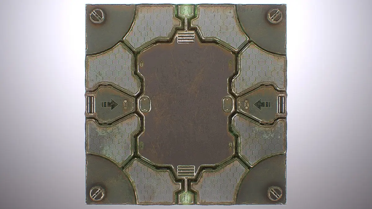 Seamless PBR Texture for Spaceship Sci-Fi Settings, can be used on Corridor Floors, Hangars, Ship Hulls etc. or combine them with other sets to give your level the desired Design.