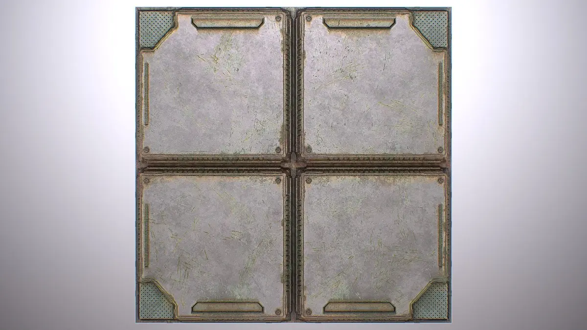 Seamless PBR Texture for Spaceship Sci-Fi Settings, can be used on Corridor Floors, Hangars, Ship Hulls etc. or combine them with other sets to give your level the desired Design.