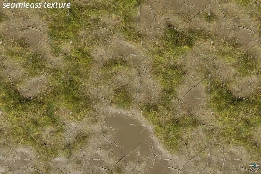 This is 4K PBR TEXTURE cacarefully made high quality tileable, seamless Dirt Grass Mud Puddles texture set ready to apply to your materials to add more realism and artistic look to your scenes in any host application