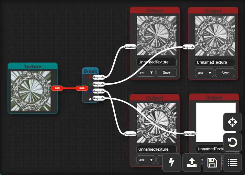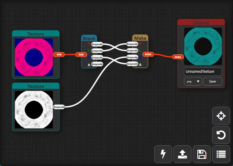 With this program, you can use nodes to convert mask textures from Unity to Unreal Engine or vice versa, extract the four channels of a mask and save them as separate textures, or generate a new mask with the channel configuration you want, convert a texture to a normal map, and more.