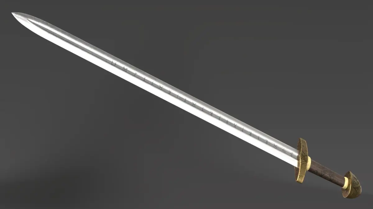 Low poly 3D model of a sword with PBR textures, suitable for use in games. Model has 1600 quads and includes 2k Diffuse, Metallic, Roughness and Normal maps.