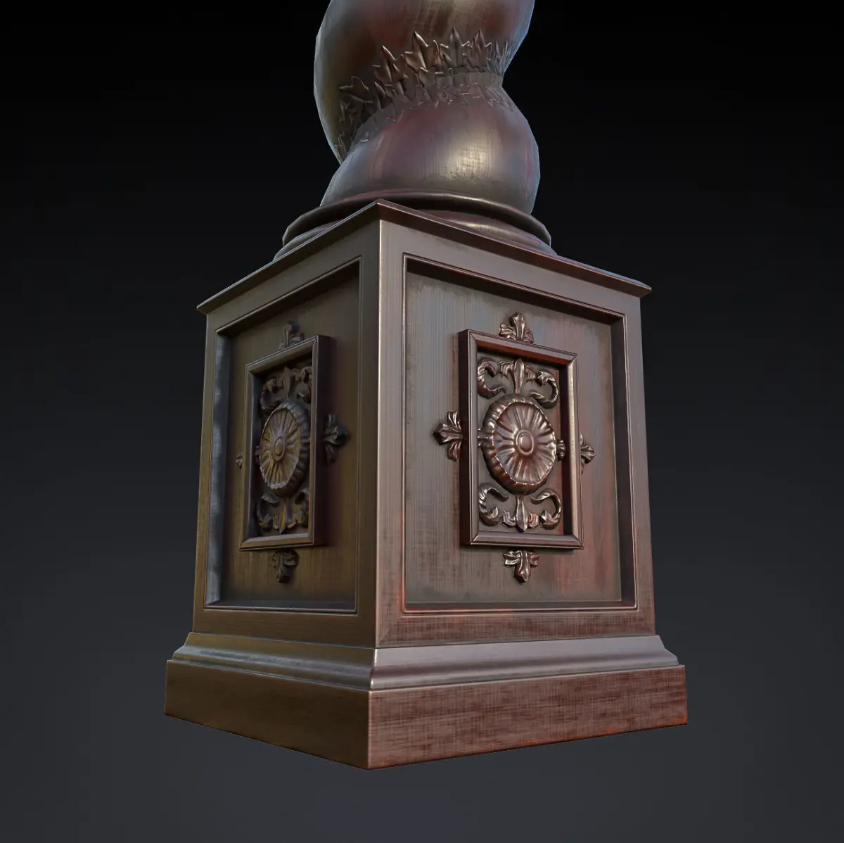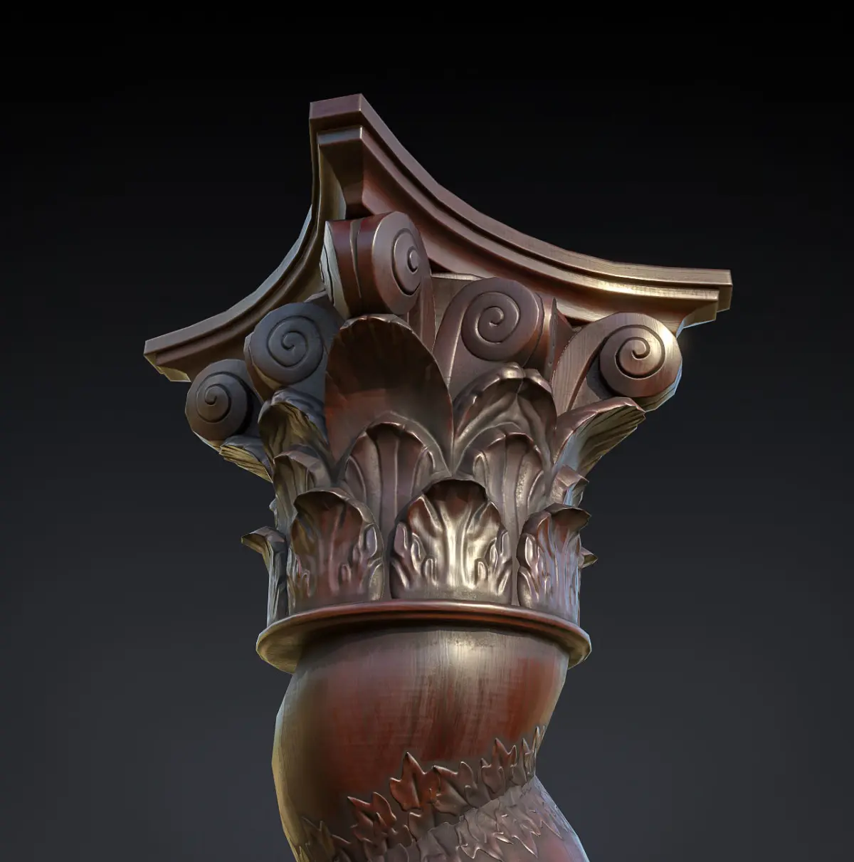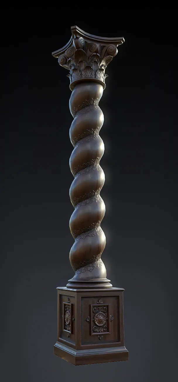 - Pillar_gothic_ARM.tga - Ambient (Red channel), Roughness (Green channel), Metallic (Blue channel).