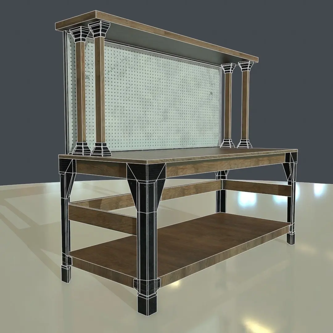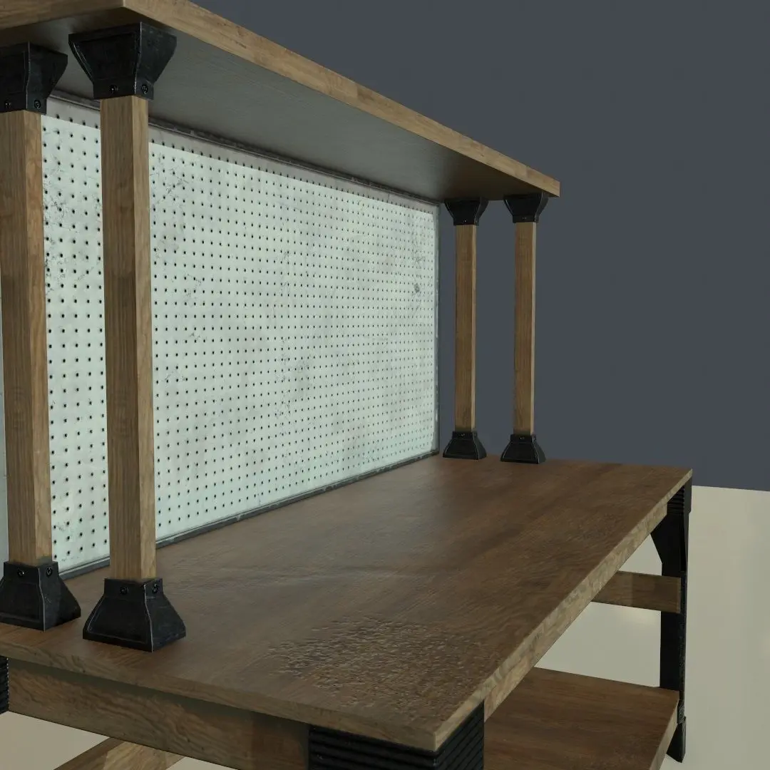 This package contains a high quality, game ready workbench model that can be used in any realtime renderer that supports the physically based rendering pipeline aka PBR, using the metallic workflow. (If you are unsure what this means, texturing of this model is probably not compatible with your target renderer. Traditional specular/gloss maps are not included!)
