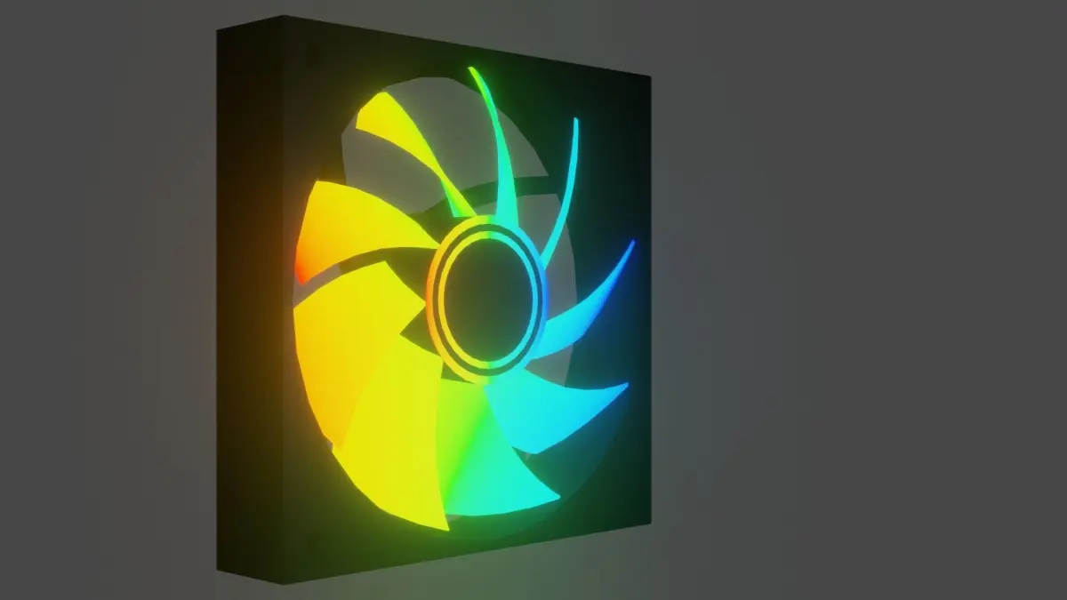 a computer fan measuring 12 centimeters with a fan that has RGB lights
