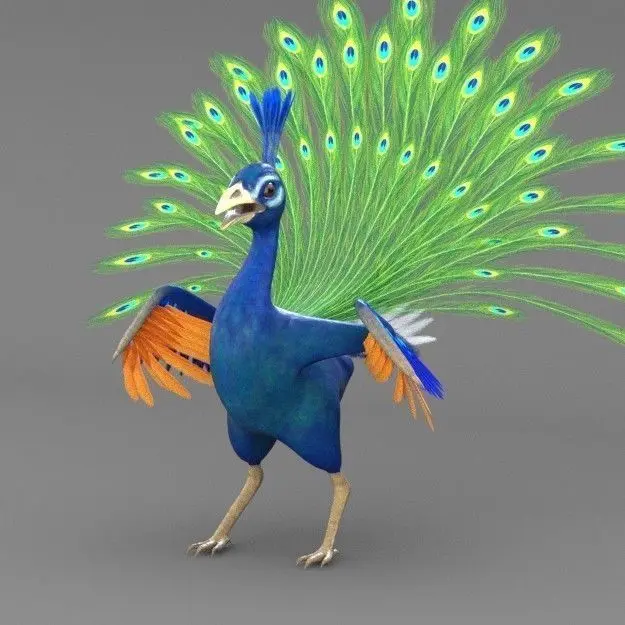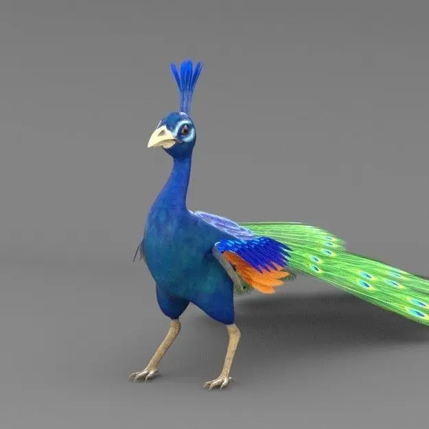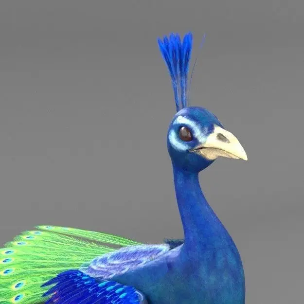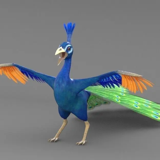 Low-poly model of peacock.Textures in archives (Diffuse, Feather_Alpha, Feather, Normal).Model have 5 shape keys (Blender): Wings Fly\Walk, Tail Up, Mandible Open\Close.