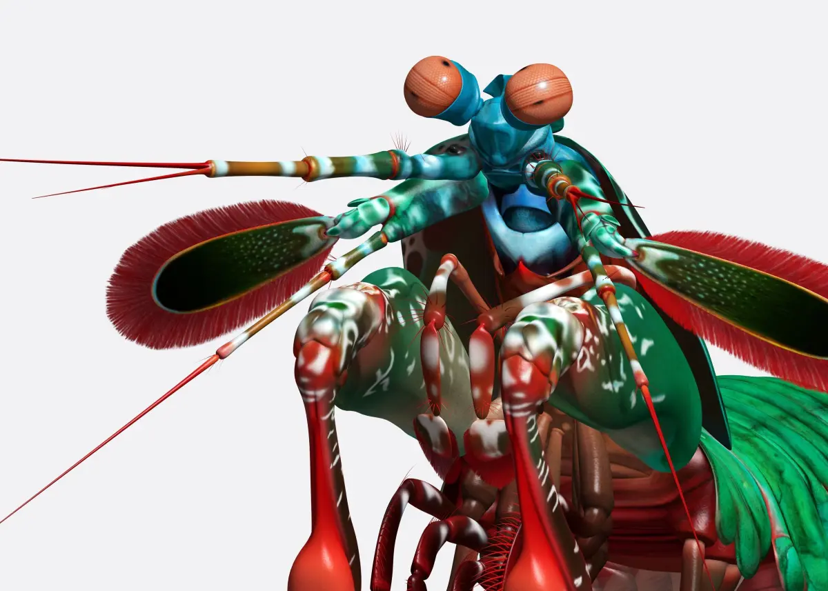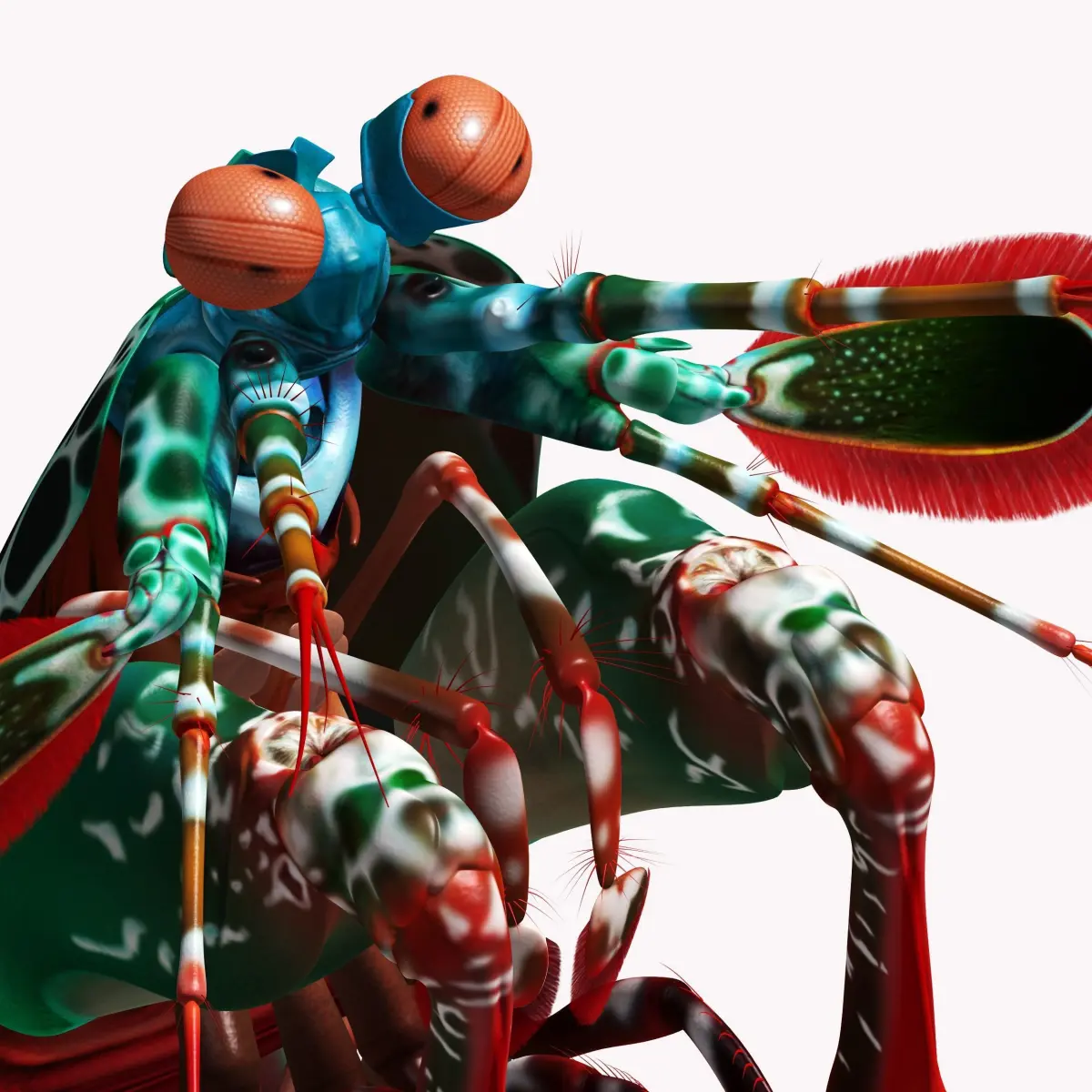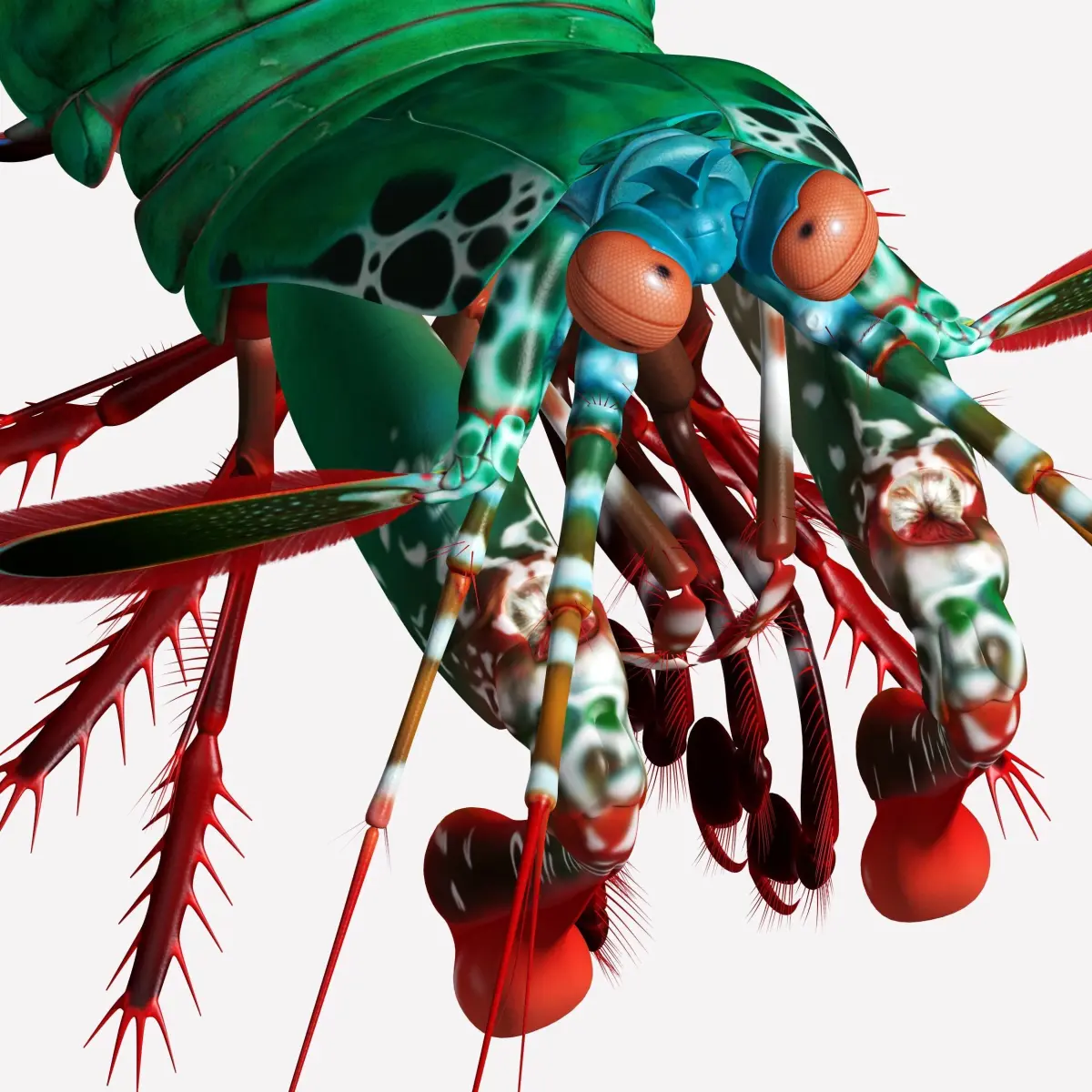 Peacock mantis shrimpHigh detailed Subdiv model.Meshes are all quads; faces 26556 Vertices 29164