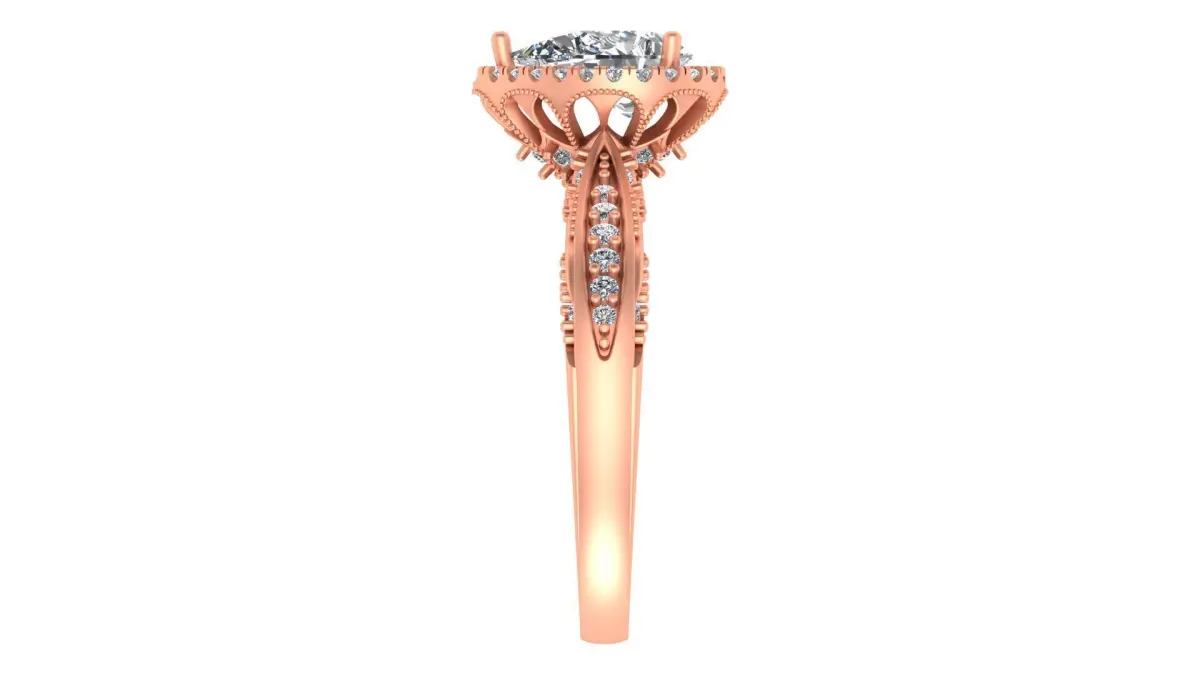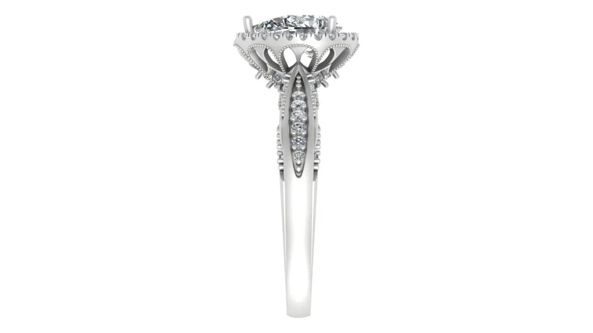Filigree Gallery Work: Elegant openwork design beneath the center stone, adding artistry and sophistication.