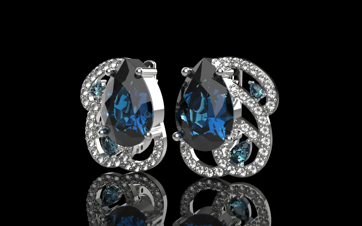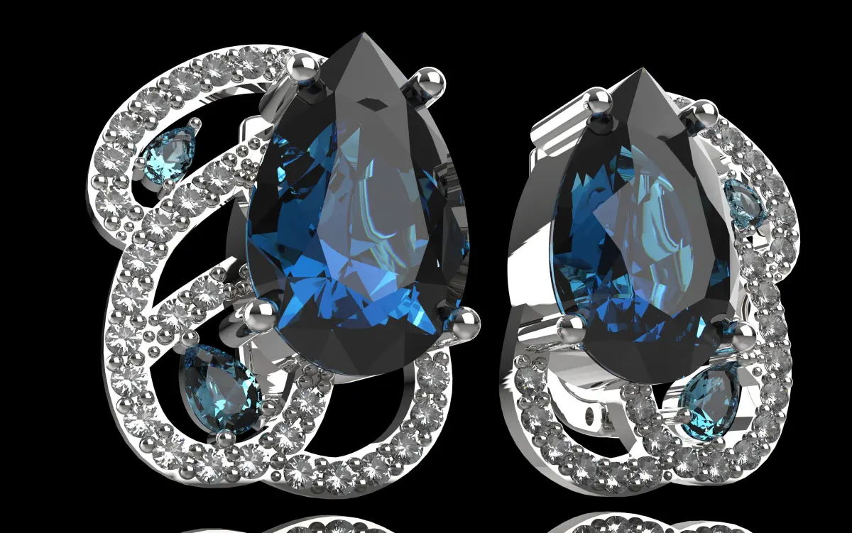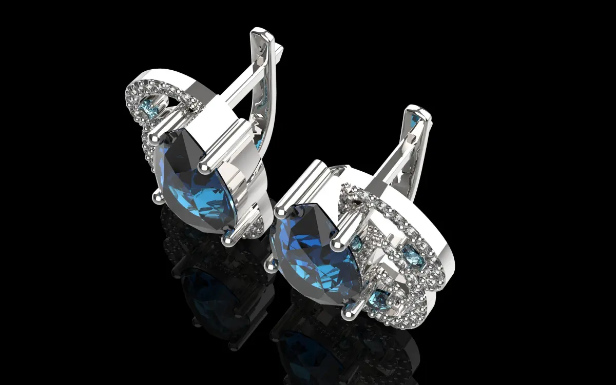 Elegant Drop Earrings with Pear-Cut Stones – 10mm, 3mm, 2mm – 3D Jewelry Model