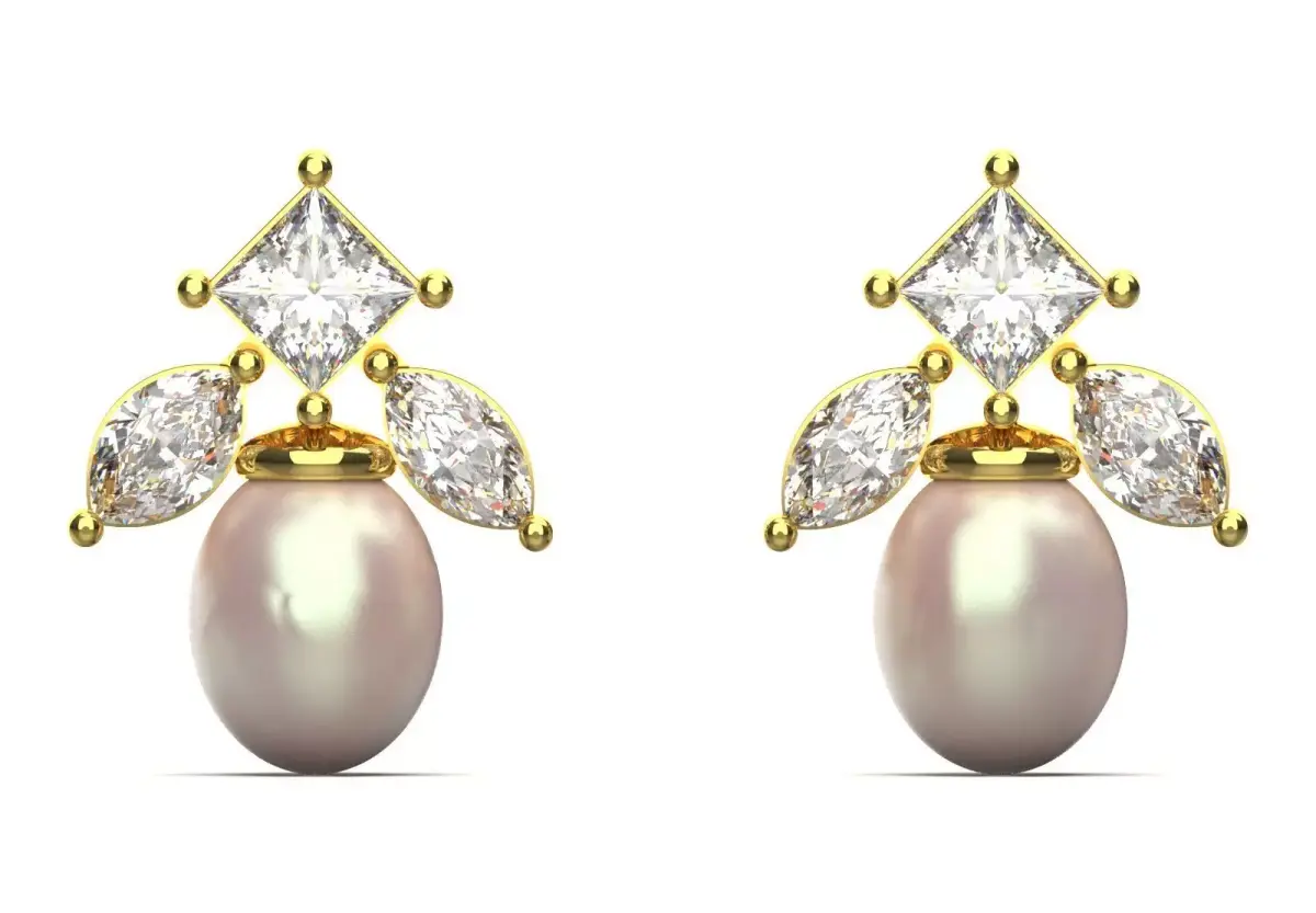 Diamond Size and Carat Weight: 2 Prince Cut Diamonds. 4 Marquise Cut Diamonds. 2 Pearls. Total Diamond Weight 0.80 Carats. Check the Diamond Chart Attached in the Image.