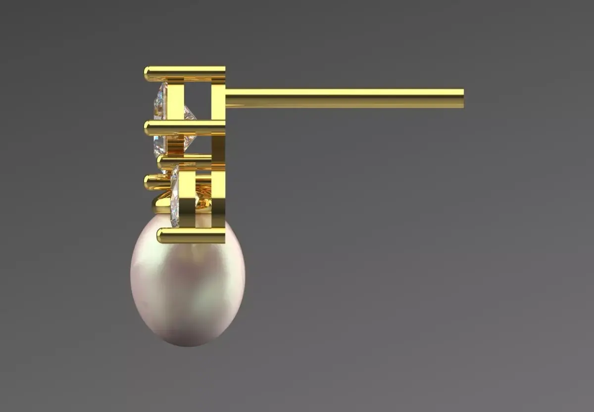 Pearl and Diamond Dangle Stud Earrings Model PE0051