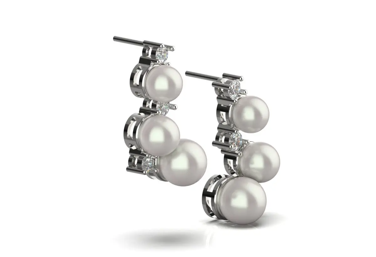 Pearl earrings with diamond jewelry are a combination of beauty and elegance. Pearls are known for their natural softness and shine and can add a classic and elegant look to any outfit. On the other hand, diamonds are a symbol of luxury and wealth with their dazzling brilliance and extraordinary hardness. These earrings usually come in a variety of designs, from simple and minimalist models to intricate and artistic designs. The combination of pearls and diamonds not only increases the visual beauty but also conveys a certain sense of elegance and charm. These earrings can be a great option for special occasions or even everyday wear and can easily be matched with other jewelry and clothes.