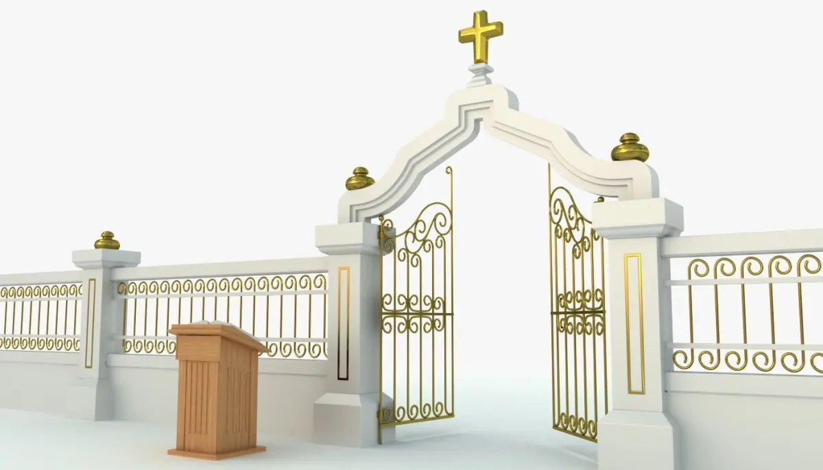 This highly detailed and elegant 3D Model of The Pearly Gates of Heaven includes a beautiful archway entrance with double gate doors that can open inwards or outwards at 90 degrees. Also included is a podium with a book of names that haven been generated at random. The applied texture can be changed or replaced with any 2d software.
