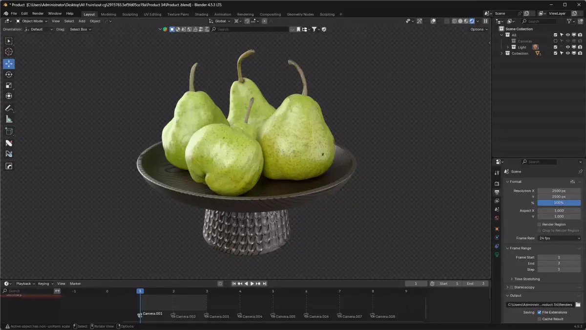 High-quality 3D model of Pears in a Bowl featuring food item called Pears in a Bowl for intorior or extorior decoration. The download includes the native Blender file with full material and lighting setup, as well as OBJ and FBX exports for compatibility with other software. Both high-poly and optimized low-poly meshes are provided, along with pbr textures (Color, Normal, Roughness, Displacement, and Subsurface Scattering). All assets are UV-mapped and ready for use in rendering, animation, or real-time projects.