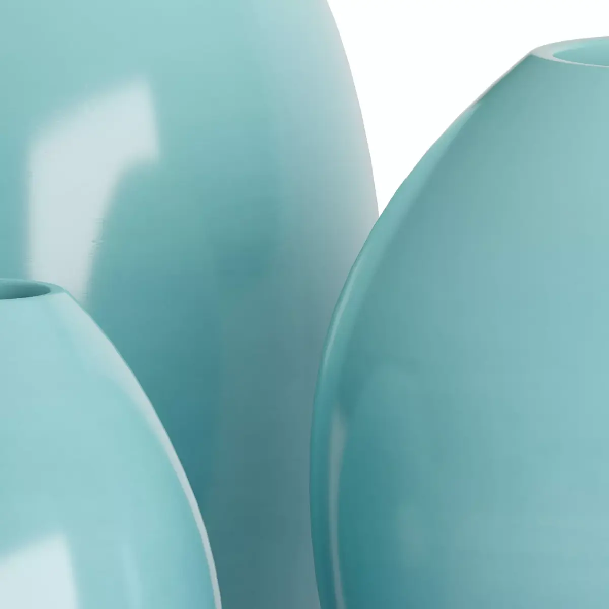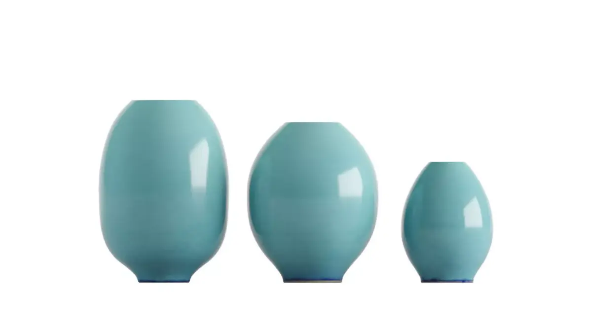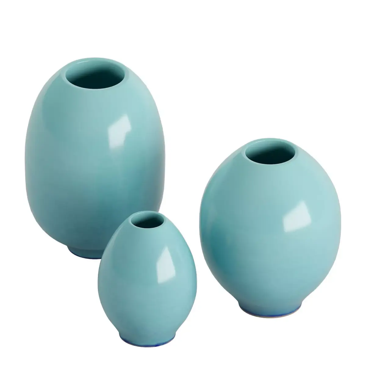 - This set of three ceramic vases is a perfect blend of blue and green, creating a cool, modern, and extremely pleasing aesthetic. A subtle dark blue border at the base of each vase adds a delicate touch, balancing the overall design