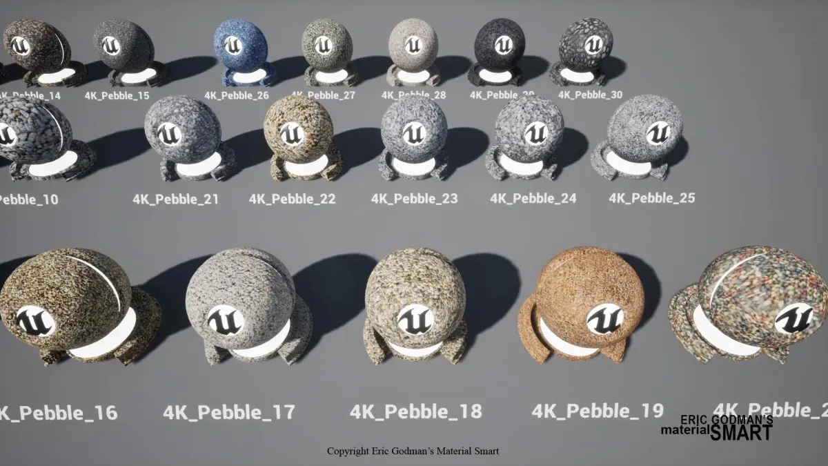 A Set of 60 pebble material instances created with master materials from Material Smart: World Aligned General Series, featuring full texture map customization, tessellation, and world aligned options for PC/Mobile development. Before you buy, please check the optimization version: Optimized Pebble World Aligned Materials: same featured materials with less than half texture loading capacity, treading off its full texture map customization options.This package contains a set of 60 smart material instances with full customization. 30 advanced/basic material instances for each PC/Mobile application developments. All material instances are created based on master materials from Material Smart: World Aligned General SeriesBasic material instances featuring: • BC, R, and N texture map options • Full UV optionsAdvanced material instances featuring: • BC, S, R, N, and AO texture map options • Full UV optionsAdditional functionalities featuring: • World Aligned toggle options on XY|XYZ|Z • Tessellation options • Simple/advanced S/R texture map optionsFor more pebble master materials, please check Material Smart: World Aligned General SeriesFeatures: • 30 material instances for Mobile application development (Basic) • 30 material instances for mid-to-high end PC/console application development (Advanced) • 90 texture maps for Mobile material instances in 2048 resolution • 180 texture maps for PC/Console material instances in 4096 resolution • All texture maps replacement and fine-tune options • World aligned options on XY | XYZ | Z • Tessellation can be fine-tuned and toggled on/off • Simple/advanced specular selection • Simple/advanced roughness selection • Specular texture/specular simulated from roughness selectionNumber of Master Materials: 2Number of Material Functions: 7Number of Textures: 273Number of Material Instances: 60Documents: Source textures cite, and license can be found under the project folder at “Source Texture Cite & License”