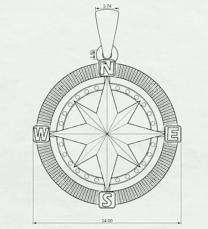 pendant height 26.6 mm. width 24.0 mm. thickness 2.4mm.
