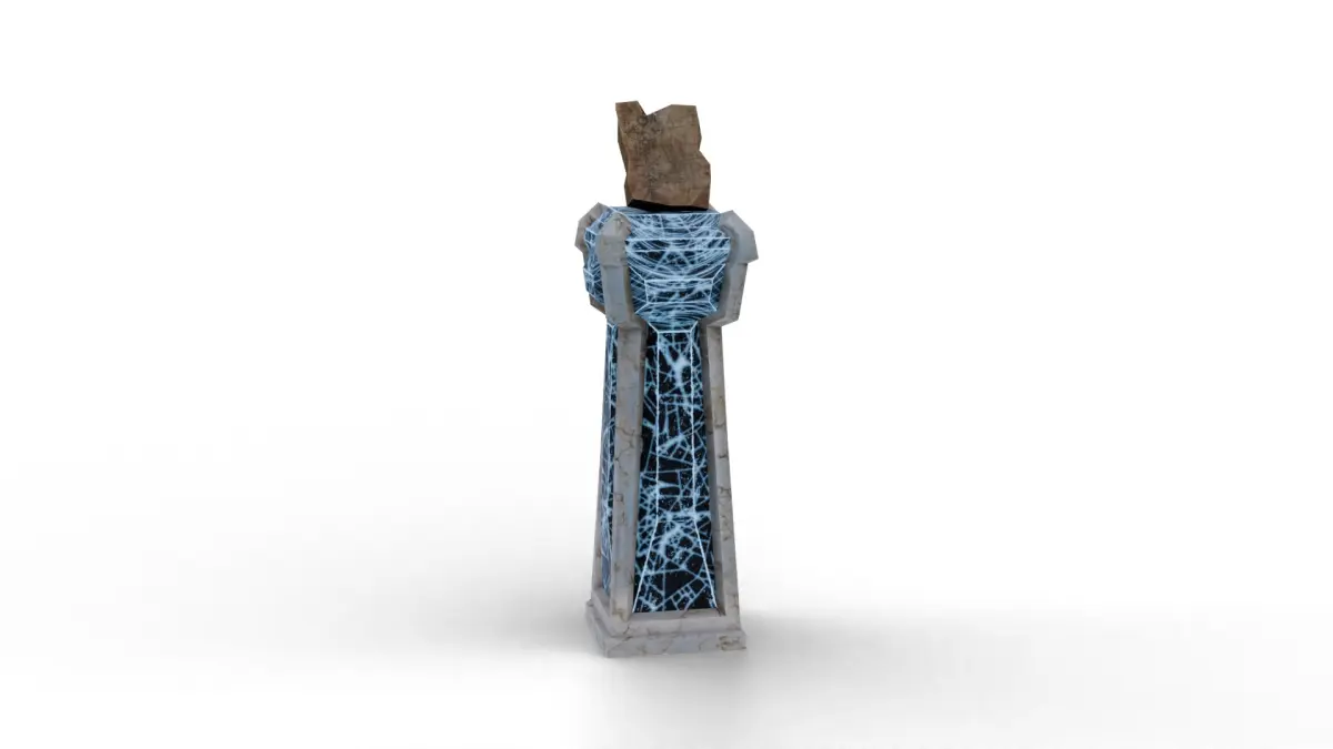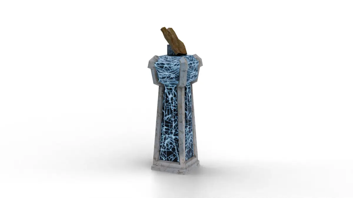 This is a low poly model of a stone pedestal with a piece of ancient parchment on it.