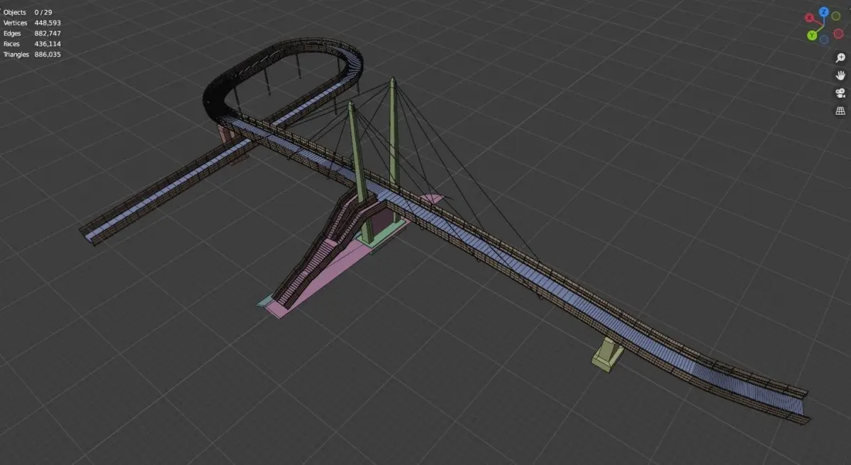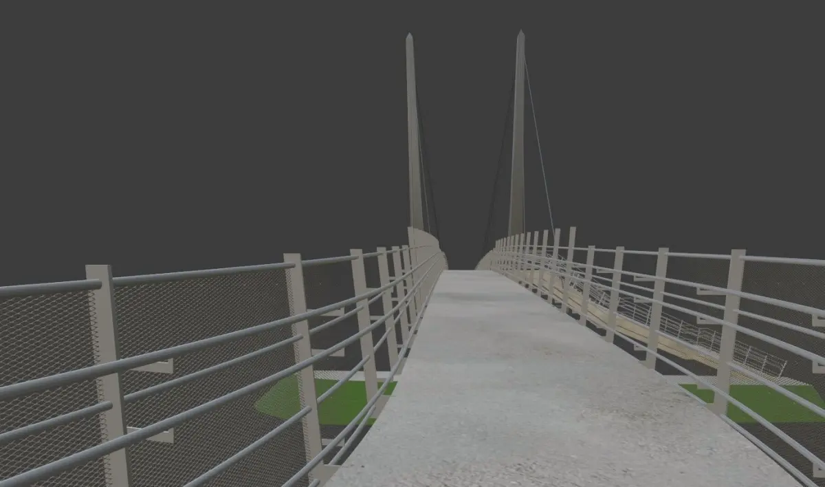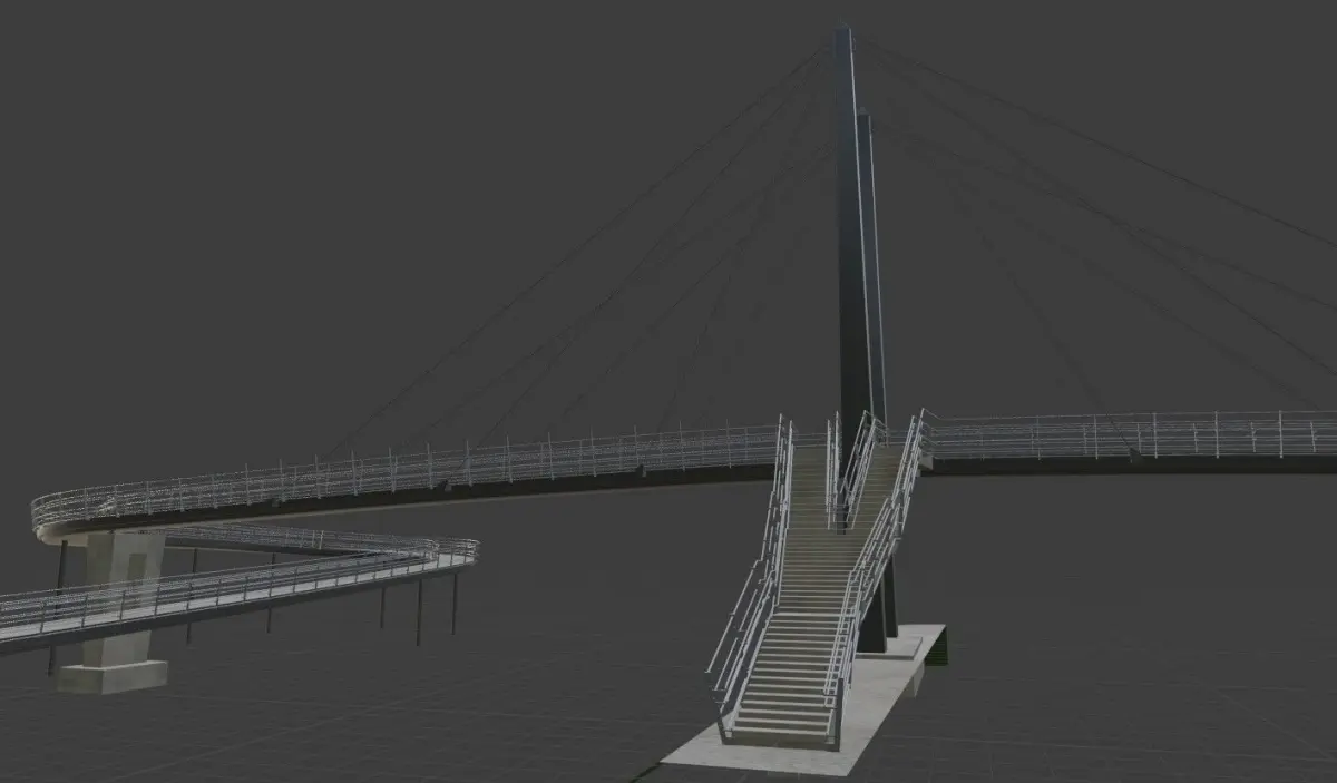 Simple rather low poly architectural model cut from a more extensive project with simple materials and textures. There is some terrain elevation on both ends. Perhaps someone finds it useful.