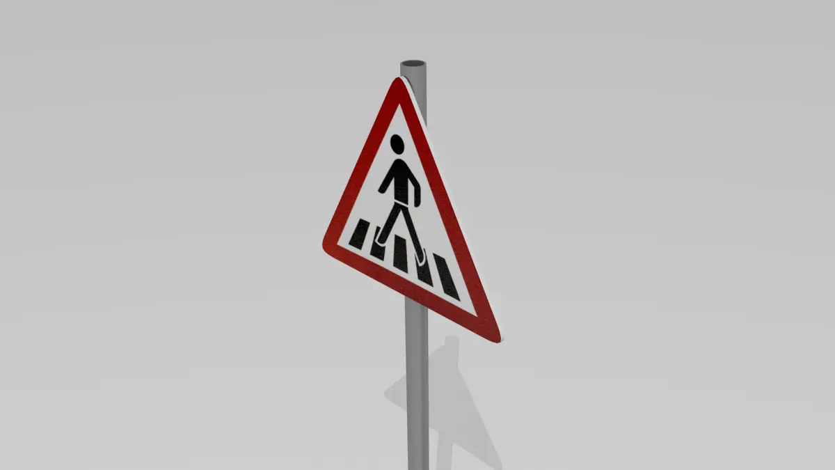 A pedestrian crossing sign modeled to specs, with materials and texture applied.