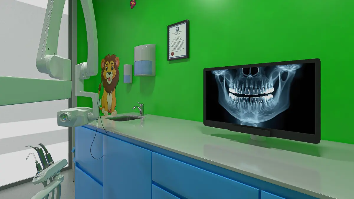 Pediatric Dental Room is a 3d model of a child-friendly dental treatment room designed for pediatric dentistry, complete with specialized equipment and a welcoming environment for young patients.