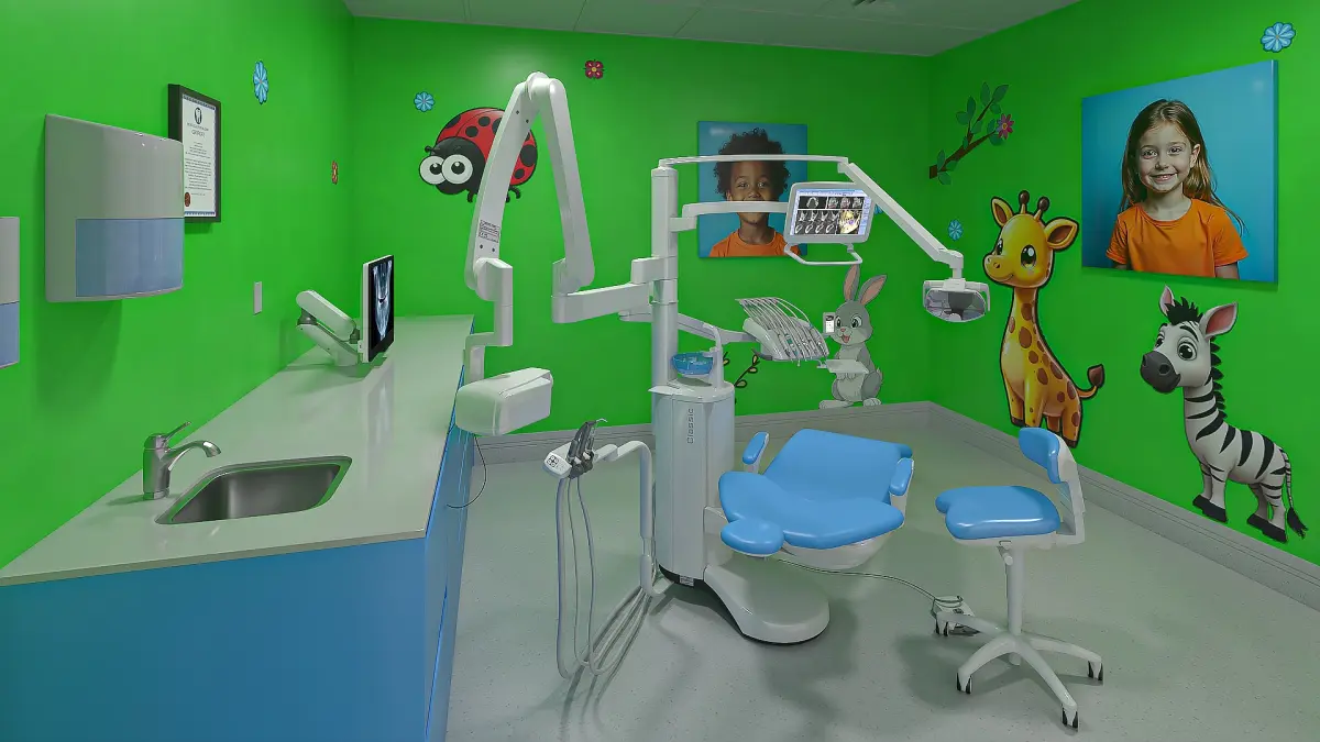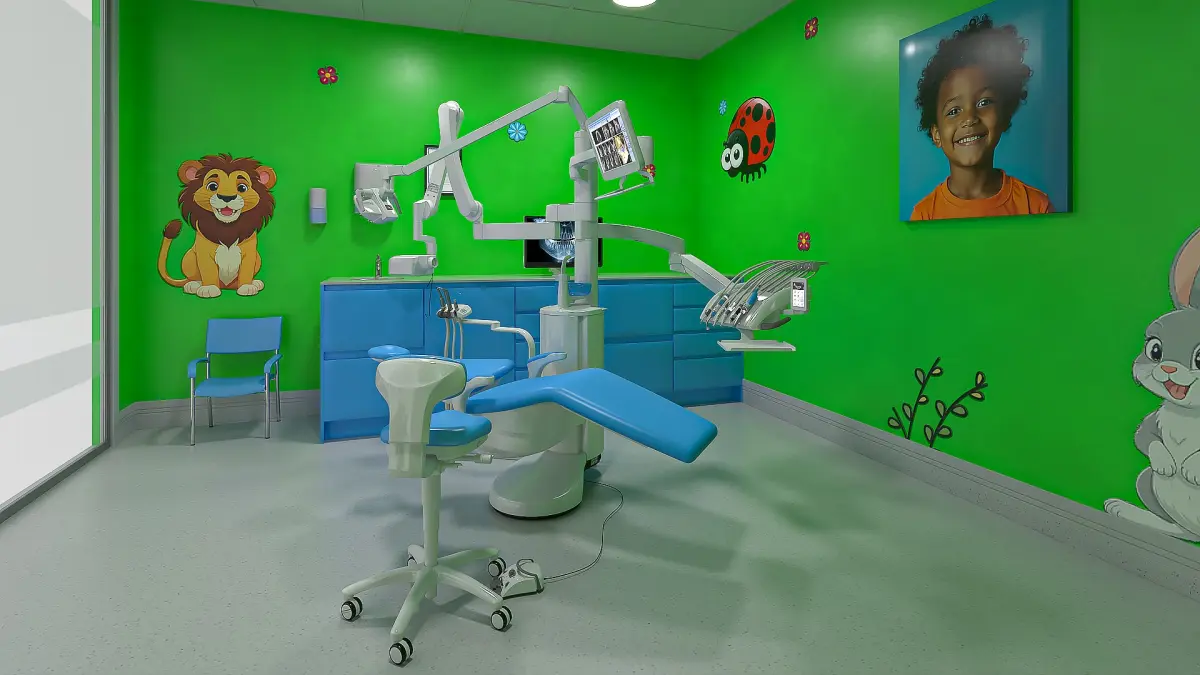 For pediatric dental clinics, dental practice design, healthcare interior design, children’s dentistry, medical space planning, dental office marketing, educational materials for dental professionals, child healthcare, and family-friendly medical spaces marketing, or promotional projects.