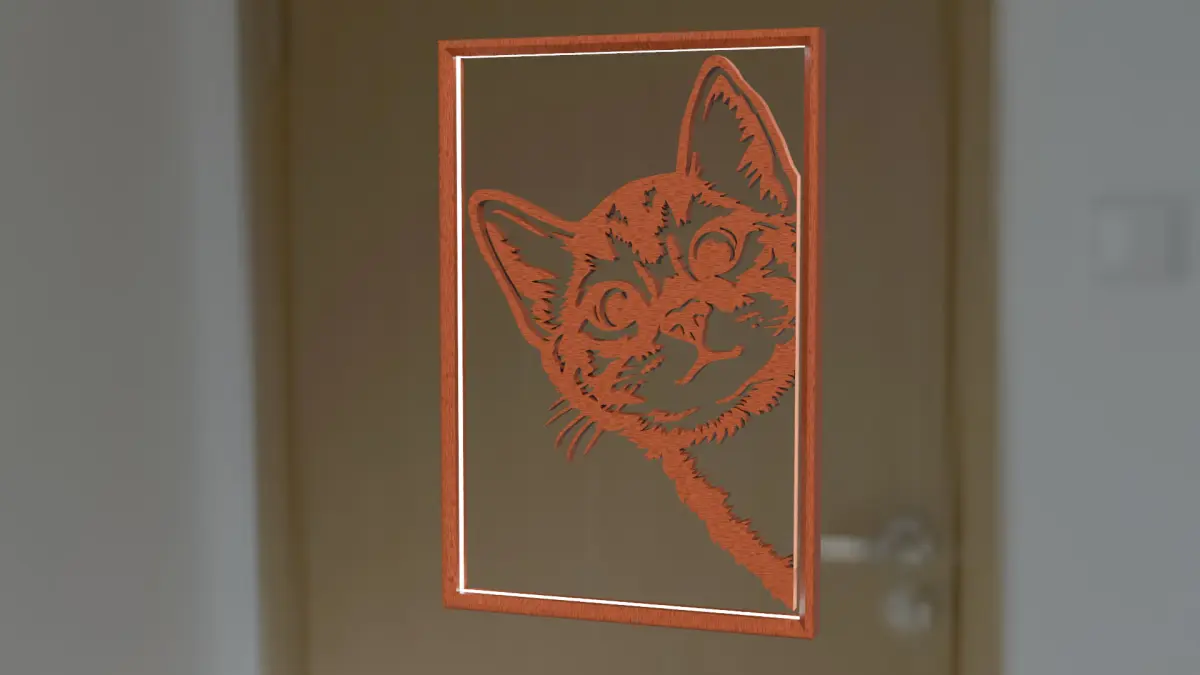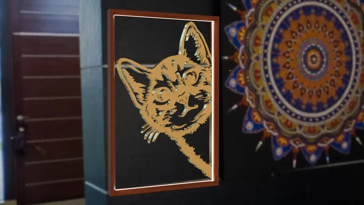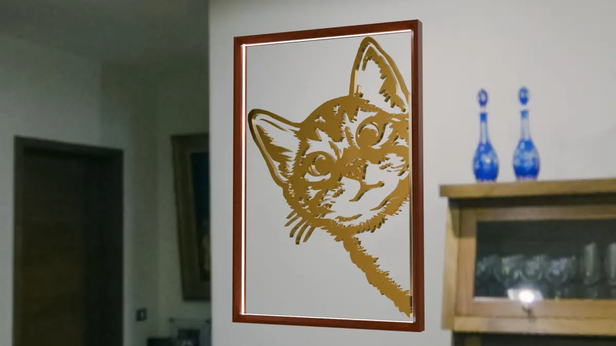 Bring a touch of elegance and playfulness to your space with this Peeking Cat 3D Wall Art. This beautifully designed decorative laser-cut panel features a curious cat peeking from the side, making it a perfect addition to any modern, rustic, or minimalist interior. Ideal for home decor, wall decoration, gifts, or pet lovers. This design is optimized for easy manufacturing and can be resized to fit different needs. Perfect for DIY projects, professional makers, or anyone looking to add a unique feline touch to their environment.
