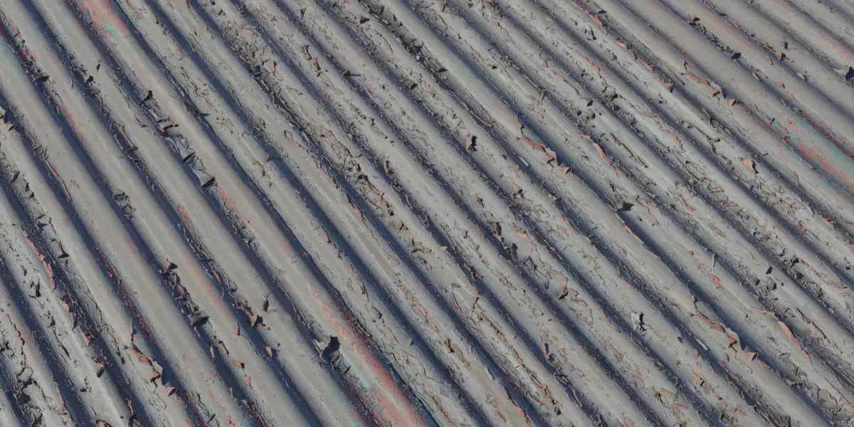 A highly detailed PBR material of aged corrugated steel with heavy, curling paint flakes revealing oxidized underlayers for dramatic, story‑rich surfaces in games, film, and archviz. The texture preserves sharp flake edges, ridged geometry, and subtle grime gradients that hold up in close‑ups while tiling cleanly across large walls and roofs. Delivered maps include Basecolor, Normal (OpenGL), Roughness, Metallic, AO, and Height/Displacement, calibrated for Blender, Unreal Engine, Unity HDRP/URP, and Substance tools, with 8K masters plus 4K LODs for optimization. Height data captures flake lift, chipped cavities, and rib amplitude for convincing parallax or tessellation without heavy shader complexity on hero assets. Ideal for abandoned factories, shipyards, back‑alley set dressing, and post‑apocalyptic environments where layered decay sells realism fast.Resolution: 8192×8192 (4096×4096 included).